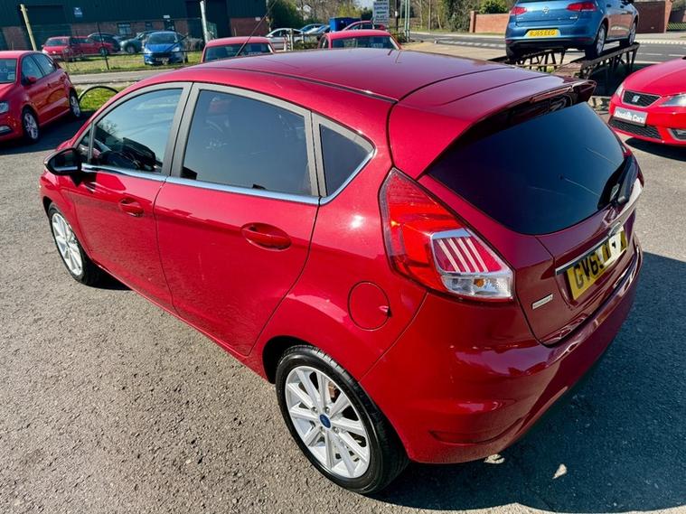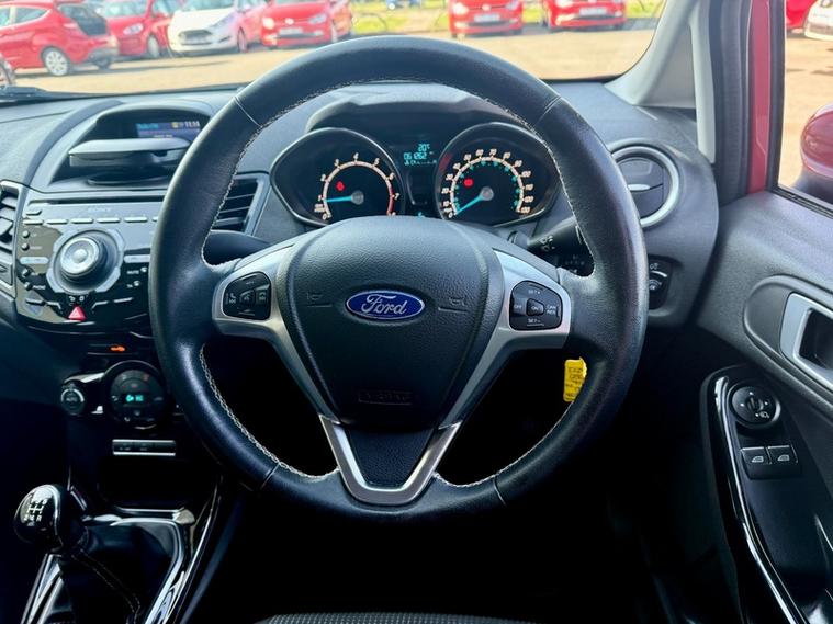 ABSOLUTE CARS have this 5 Door Ford Fiesta 1.0T EcoBoost Titanium Euro 6 (s/s) in Metallic Red with Alloys. An Ideal First Cars + Only £20 a Year Tax ! Call in for a test drive, finance arranged & part exchange considered., 3 months warranty, Next MOT due 29/12/2026, Last serviced at 60, 773 miles, Full service history, Black Cloth interior, 5 seats, Metallic Red, 1 owner, Upgrades - Lithos Cloth - Charcoal Black, Standard Features - 12V Power Socket - Front, 16in Alloy Wheels - 15 Spoke, 4.2in TFT Display, ABS - Anti-lock Braking System, AUX Connection, Aesthetic Lighting Package, Airbags - Curtain, Airbags - Driver Side Knee, Airbags - Front Passenger, Airbags - Head and Thorax, Airbags - Passenger Deactivation, Armrest - Centre Console, Automatic Dimming Rear View Mirror, Automatic Headlights - Rain Sensing Wipers - Auto Dimming Rear View Mirror, Automatic Rain Sensing Wipers, Bluetooth Hands-free Phone, Body Colour Exterior Mirrors, Brake Warning Lights - Automatic Flashing of Brake Lights Under Heavy Braking, Bumpers - Front and Rear - Body Colour, Centre Console - with Trinket Tray - 2x Cup Holders - Illuminated, Chrome Belt Line Finisher, Courtesy Light - Overhead with Theatre-Style Dimming, Courtesy Lights with Map Reading Lights, Cruise Control, DDS - Deflation Detection System, Door Handles - Body Colour, Door Mirrors - Power-Foldable with Puddle Lights, Drivers Airbag, EATC - Electronic Automatic Temperature Control - Climate Control, EBA - Emergency Brake Assist, EBD - Electronic Brakeforce Distribution, ECOmode, EPAS - Electric Power Assisted Steering, ESP - Electronic Stability Programme, Electric Windows - Front with One Touch Lowering Drivers, Emergency Assistance, Emergency Brake Warning - Automatic Hazard Warning Lights, Engine Immobiliser, Floor Mats - Front and Rear - Velour, Ford Easy Fuel Capless Refuelling System with Misfuel Inhibitor, Ford SYNC, Front Fog Lights - Chrome Bezel Rings, Front Lower Grille - Chrome Surround, Front Lower Grille Insert and Surround - Black, Front Seatback Map Pockets - Driver and Passenger, Front Upper Grille - Chrome Finish Surround, Front Upper Grille Insert - Chrome bars, Gear Knob - Leather, Gearshift Indicator Light, Gearshift Knob - Leather-Trimmed with Chrome Finish Bezel, Glovebox - Illuminated, Head Restraints - 2-way Adjustment, Head Restraints - Rear 2-Way Adjustment, Headlights - Automatic, Headlights - Follow Me Home, Headlights - Halogen Projector with Silver Bezel, Headliner - Woven, Heated Front Windscreen, High-Mounted Rear Brake Light, Hill Start Assist, IPS - Intelligent Protection System, Interior Door Lever - Chrome Finish, LED Ambient Courtesy Lighting, LED Daytime Running Lights, Leather-Trimmed Handbrake, Loadspace Compartment Light, Loadspace Floor Carpet, Locking Wheel Nuts, MyKey, Perimeter Anti Theft Alarm, Pollen Filter, Rake and Reach Steering Adjustable, Rear Courtesy Lights, Rear Privacy Glass, Rear Spoiler - Body Colour, Remote Central Locking, Removable Package Tray, Seats - 60-40 Split Folding Back and Fixed Cushion, Seats - Drivers 4-Way Adjustment, Seats - Drivers Lumbar Support, Seats - Front Comfort Style, Seats - ISOFIX Mounting Brackets for Child Seats, Sony CD-Radio Player-MP3 Compatibility, Sony DAB Digital Radio, Speakers - x6, Steering Wheel - 3-Spoke - Leather Trimmed with Bezel, Steering Wheel - Multifunction, Stowage Pockets - Driver and Front Passenger Seatbacks, Tailgate Handle - Body Colour with Chrome Finisher, Traction Control - TC, Trip Computer, Tyre Inflator Kit, Tyre Pressure Monitoring System, USB Connection, Voice Control - Audio, AS WE ARE AN AA CARS DEALER THIS VEHICLE COMES WITH 12 MONTHS AA BREAKDOWN COVER.