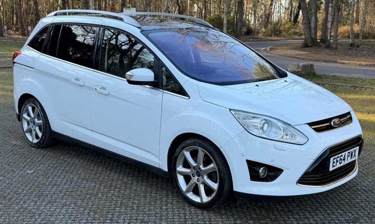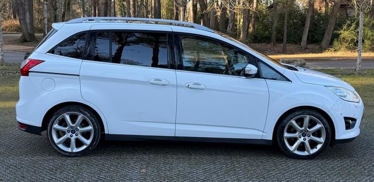 Climate Control - Parking Sensor(s) - Half Leather Trim - 7 Seats - 18' Alloy Wheels - Panoramic Roof - Privacy Glass - 7 seats, White, 2 owners, 12V Power Socket - Additional Rear, 12V Power Socket - Front, 17in Alloy Wheels - 5x2 Spoke - Premium, 2nd row airvents, 4.2in TFT Display, ABS - Anti-lock Braking System, AUX Input Socket, Air Conditioning - Dual Zone Electronic Automatic Temperature Control, Airbag - Front Passenger, Airbags - Driver, Airbags - Front and 2nd Row Curtain, Airbags - Side Impact, Alarm - Thatcham Category 1 with Volume Sensing and Perimeter, Anti-roll protection, Automatic Dimming Rear View Mirror, Automatic Rain Sensing Wipers, Bi-Xenon Headlights, Bluetooth Hands-free Phone, Brake Warning Lights - Automatic Flashing of Brake Lights Under Heavy Braking, Branded integrated control panel, CD storage, Centre Console - Premium with Sliding Armrest Stowage Bins and 12v Front and Rear Sockets, Centre console - bright finish cup holder surrounds, Child Observation Mirror, Courtesy Light - Footwell Illumination, Courtesy Light - Front and Rear Reading Lights, Courtesy Light - LED Overhead and Load Compartment, Cruise Control with Adjustable Speed Limiter, DDS - Deflation Detection System, Door lever front - Satin Chrome finish, Doors - Sliding Rear Passengers, Drivers Seat Lumbar Support, EBA - Emergency Brake Assist, EBD - Electronic Brakeforce Distribution, ESP - Electronic Stability Programme, Electric Windows - Front and Rear with One Touch, Electric Windows - Global Opening-Closing, Emergency Assistance, Floor Mats - Front Velour with Ford Logo, Floor mats - 2nd row rear - velour, Floor mats - 3rd row rear - velour with Ford tag, Ford Easy Fuel System, Ford Easy-Fuel Capless Refuelling System, Ford Power Engine Start-Stop Button, Ford SYNC, Front Fog Lights, Front Seat - Passenger Manual Height Fore-Aft Adjustment, Front Seat - Passengers Manual Lumbar Support Adjustment, Front suspension - Independent with MacPherson Struts, Fuel Computer, Gearshift Knob - Leather, Headlights - Automatic, Headlights - Courtesy Delay, Headlights - Jet Wash, Headliner - Luxury Woven, Heated Driver and Passenger Seats, Heated Front Windscreen, Hill Start Assist, LED Ambient Courtesy Lighting, Locking Wheel Nuts, Outside temperature thermometer, Overhead Console - Map Reading Lights and Sunglasses Holder, Overhead Console - Mood Lighting, Overhead console - A5 stowage, Panorama Roof, Parking Sensor - Rear, Power Driver Seat, Power Fold Door Mirrors, Power Rear Door Child Locks, Power Steering, Rear Seats - 2nd Row Easy Entry Tip and Slide System, Rear Seats - Two 3rd Row Individual Fold Flat Seats with Height Adjustable Head Restraints, Remote Central Locking, Remote multifunction display controls, Scuff plates - Front aluminium-finish with Ford logo, Seats - Drivers Manual Height and Fore-Aft Adjustment, Sony DAB Audio System, Sony Radio-CD, Speakers - x9, Steering Column - Rake and Reach Adjustment, Steering Wheel - 4 Spoke Leather Trimmed, Steering Wheel - Multifunction, Stowage Boxes - Two underneath rear passengers foot area, Stowage Boxes - Two underneath rear passengers foot area in 2nd row, Tonneau Cover, Traction Control - TC, Tyre Repair Kit, USB Connection - iPod Connectivity, Variable Dimming of Instrument Cluster and Radio Screen Display, Voice Control - Audio, Z-Shape Handbrake.