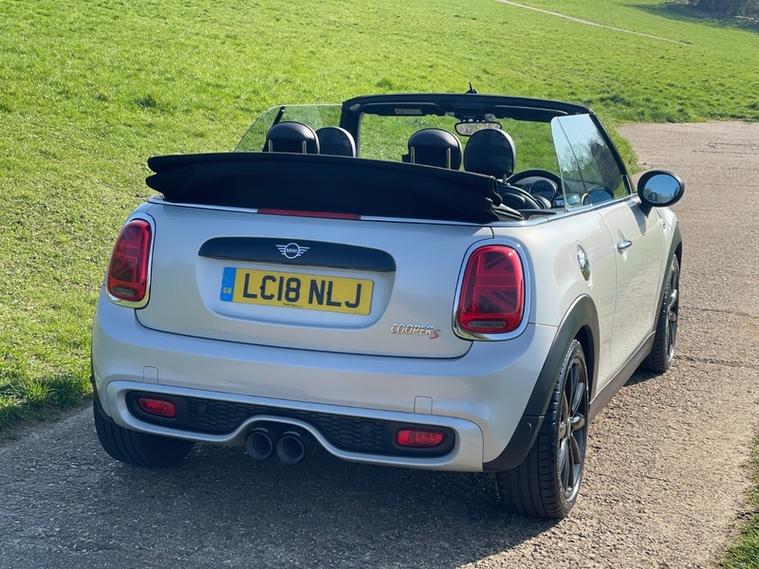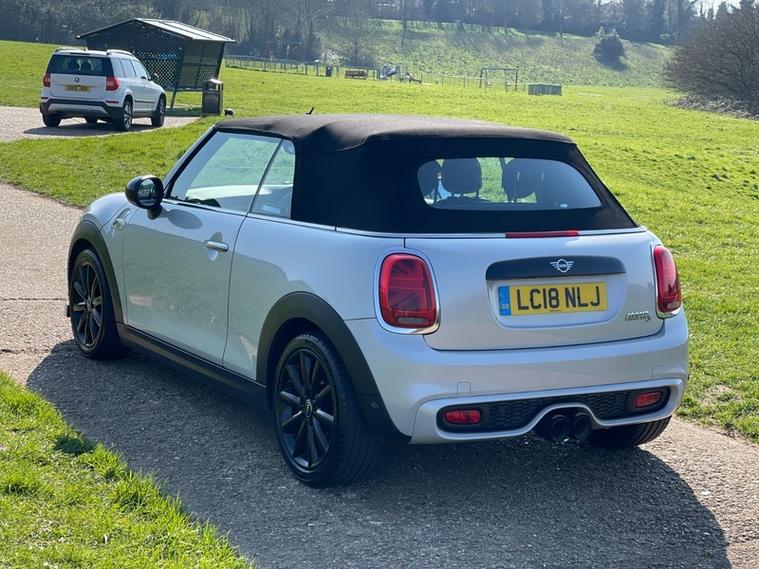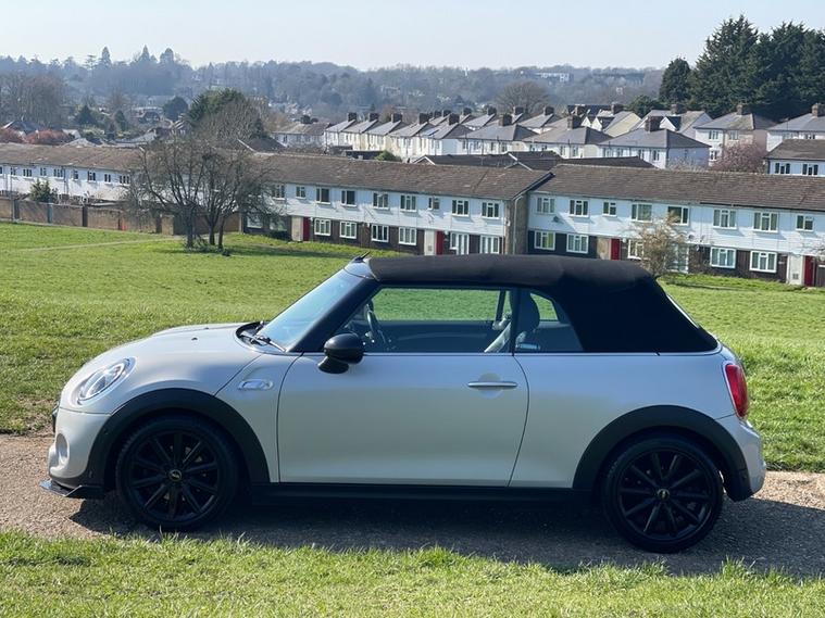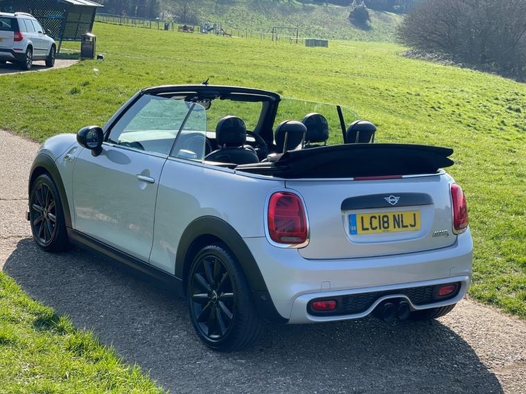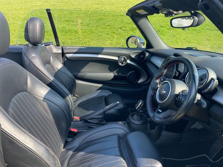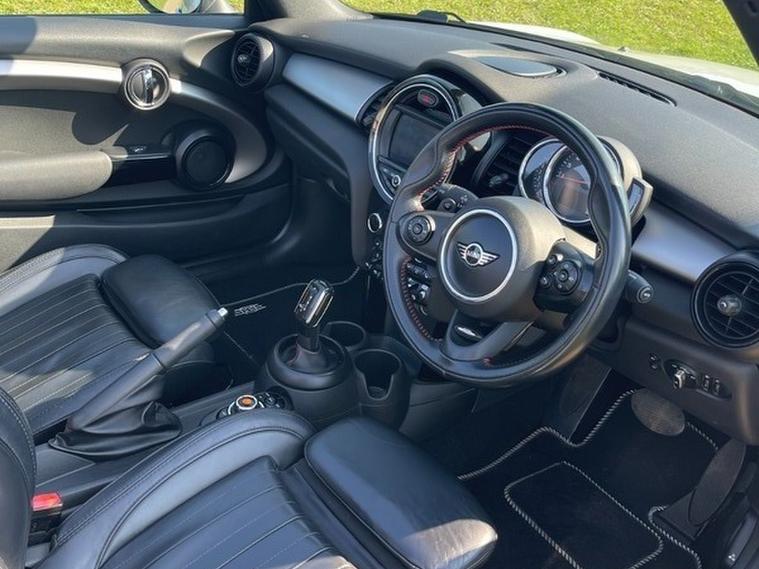 This 2018 MINI Convertible Cooper S boasts a clear vehicle history and has had only two owners, offering peace of mind for its next driver. Under the bonnet, you'll find a responsive 2.0 litre petrol engine, meeting Euro 6 emission standards. This Cooper S model comes equipped with stylish 17 inch Cosmos Spoke alloy wheels in black, fitted with run flat tyres for added convenience. Inside, the cabin is enhanced by the Navigation Plus Pack, which includes Apple CarPlay and wireless phone charging, alongside the premium MINI Yours Lounge leather upholstery in Carbon Black. Further enhancing the interior is the Dark Silver trim, and the Radio MINI system provides Bluetooth connectivity for your entertainment needs.