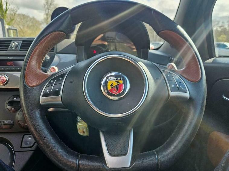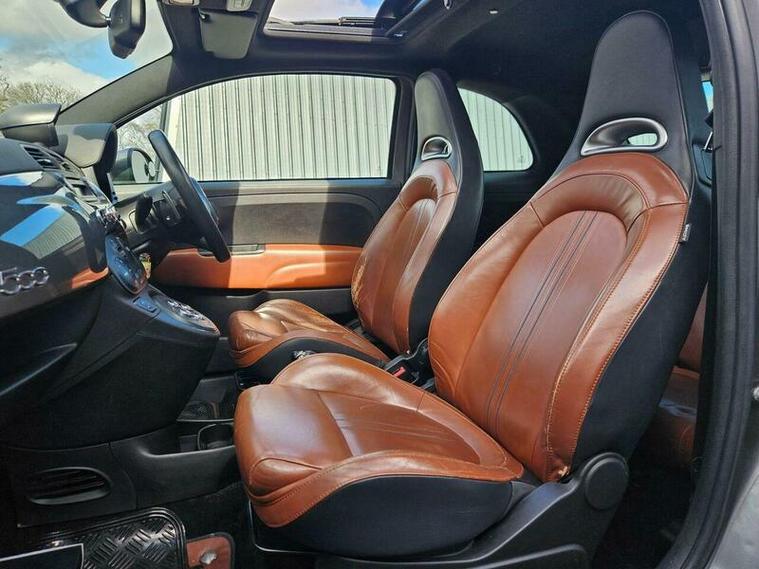 The Abarth 595 T-Jet Turismo is equipped with a spirited 1.4L petrol engine, capable of accelerating from 0 to 62mph in a brisk 7.6 seconds, demonstrating its performance advantage over many similar vehicles. Notable features include an electric sunroof, stylish 17 inch anthracite diamond cut alloy wheels, and a Blue&Me hands free system with Bluetooth connectivity. For added convenience and safety, it also benefits from rear parking sensors and Bi-Xenon headlights.