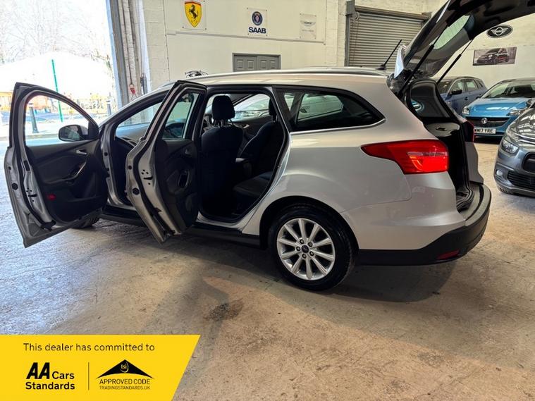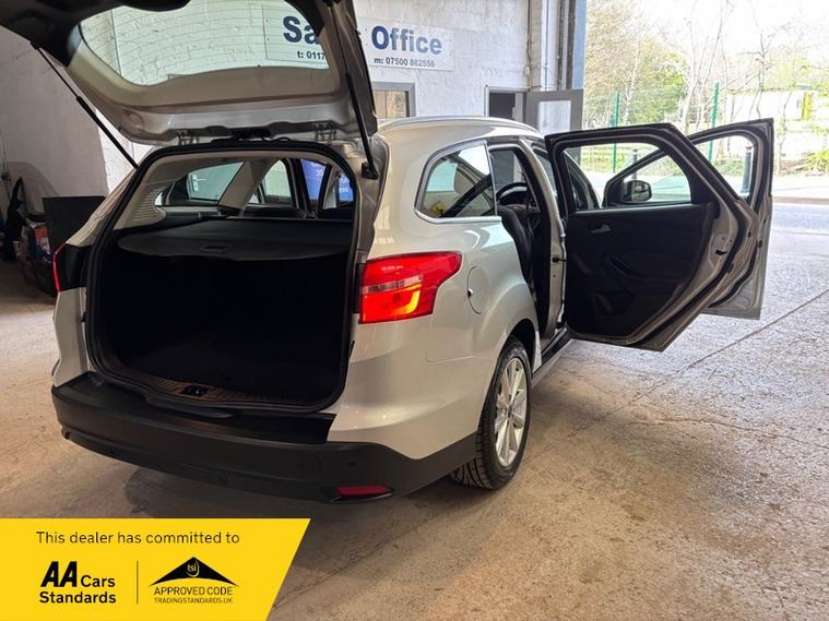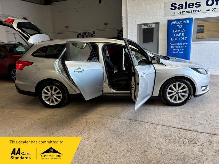 We are a proud family-run business established in 1987, with over 39 years of trusted service. Our fully indoor showroom allows you to browse comfortably in any weather. Every vehicle is HPI clear and comes with a 3-month comprehensive warranty, plus 12 months of basic AA breakdown cover for added peace of mind. We are an AA Cars Assured and Trading Standards Approved dealership, so you can buy with complete confidence, we are pleased to offer this FORD FOCUS 1.0T EcoBoost Titanium Estate 5dr Petrol Auto Euro 6 (s/s) (125 ps), very well presented example throughout, perfect family estate, very low mileage example covering just 52806 miles from new, automatic gearbox, titanium model, ideal family estate car, caz compliant, rare example with high spec such as, cruise control, privacy glass, front fog lights, satellite navigation, Bluetooth, keyless go, dab radio, parking sensors, vehicle supplied with owners book pack, servicing invoices, next mot due 12/03/2027, timing belt/water pump and service completed @52789 miles, very well cared for example, rare low mileage & automatic.