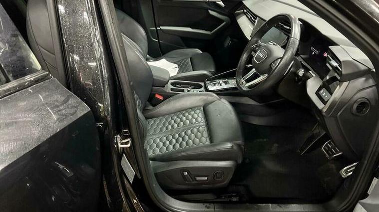 This 2022 Audi RS3 TFSI Vorsprung boasts exceptionally low mileage for its age, having covered just 20, 500 miles. This performance saloon features a potent 2.5 litre petrol engine paired with a four wheel drive drivetrain, ensuring dynamic handling and exhilarating performance. As a Euro 6 emission class vehicle, it meets modern environmental standards. The Vorsprung trim level comes equipped with a comprehensive suite of notable features, including the Comfort and Sound Package which incorporates keyless entry, a luxury branded sound system, and rear parking assistance. Further enhancing comfort are heated front seats, while the Parking Assist system with Parking System Plus, including front and rear sensors, makes manoeuvring effortless. The Driver Assistance Package adds adaptive cruise control, and the Audi Matrix LED headlights with dynamic front and rear indicators, along with a headlight cleaning system, provide superior visibility.