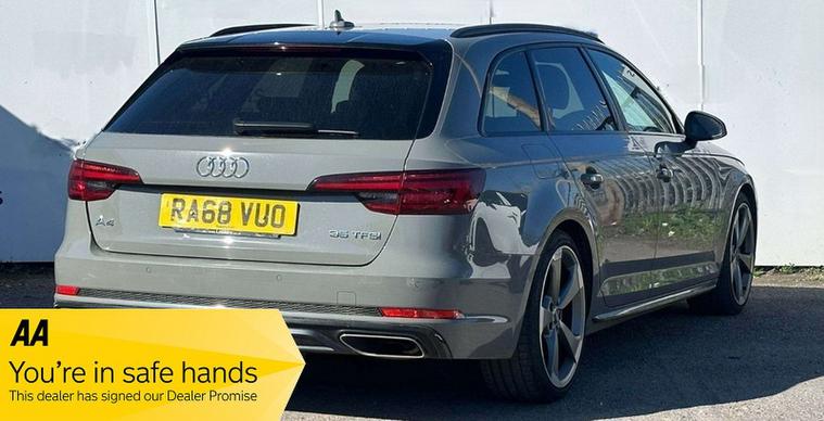This 2019 Audi A4 Avant TFSI Black Edition boasts a full dealership service history and an MOT valid until January 2027, offering excellent peace of mind. This Euro 6 compliant 2.0 litre petrol model has had only one owner and comes with a clear vehicle history check. It features striking 19 inch alloy wheels in a matt titanium look with a diamond cut finish, alongside advanced LED headlights and dynamic rear indicators. The Technology Pack enhances your driving experience with Bluetooth connectivity, wireless phone charging, and cruise control with a speed limiter., , The Black Edition trim level ensures this Audi A4 Avant stands out, and its low insurance group rating further adds to its appeal, suggesting it is more economical to run than many comparable vehicles. With a comprehensive 12 month warranty included, this well maintained Audi represents a sound choice for those seeking a premium estate car with a strong service record and desirable features. The last service was completed on 2025 09 05 at 67615 miles., 12 months warranty, Next MOT due 09/01/2027, Last serviced on 05/09/2025 at 67, 615 miles, Full dealership history, Clean bodywork, Black Part leather interior - Clean Condition, Tyre condition Good, 5 seats, Grey, 1 owner, Upgrades - Technology Pack, 19in Alloy Wheels - 5-V Spoke Design in Matt Titanium Look - Diamond Cut Finish, Alcantara-Leather - Sport Seats - S Embossed Logo - Black, Deletion of Model and Technology Designation at Rear, Standard Features - 19in Alloy Wheels - 5-Arm Rotor Matt Titanium Look - Diamond Cut, 2 x USB Charging Ports and 1 x AUX-IN, 4-Way Electric Lumbar Support, 6-Airbag System, ABS - Anti-Lock Braking System, Anti Theft Locking Wheel Bolts, Anti-Theft Alarm, Audi Connect Safety and Service - e-call, Audi Drive Select, Audi Sound System, Auto-Dimming Rear-View Mirror, Bluetooth Interface, Chrome-Plated Trims for Exhaust System, Cloth Headlining in Black, Cruise Control with Speed Limiter, DAB Digital Radio, Deluxe 3-Zone Electronic Climate Control, Door Mirrors - Electrically Adjustable and Heated with Built-in LED Indicators, Door Mirrors - Electrically Folding, Door Mirrors - High-Gloss Black, Driver Information System - 7in Colour Display, ESC - Electronic Stabilisation Control inc ABS - ASR and EDL, Electric Load Area Cover, Electric Windows - Front and Rear, Electromechanical Parking Brake, Electromechanical Power Steering, First Aid Kit and Warning Triangle, Flat Bottomed 3-Spoke Leather High Multi-Function Steering Wheel, Front Centre Armrest, Front and Rear Air Intakes in Titanium Black, Front and Rear Floor Mats, Gear Lever Knob in Black Perforated Leather, Heated Front Seats, High Gloss Black Roof Rails, High Gloss Package, High-Beam Assist, ISOFIX Child Seat Mounting and Top Tether, Illuminated Door Sill Trims with S Logo, Inlays - Piano Finish - Black, Interior Lighting, Keyless Go, LED Headlights with LED Rear Lights and Dynamic Rear Indicators, Light and Rain Sensors, Luggage Compartment Mat, MMI Navigation - SD Card Based, MMI Radio Plus with Smartphone Interface, Manual Height Adjustment for Front Seats, Multi Collision Brake Assist, Non-Smoking Package, Parking System Plus, Pedals and Footrest - Stainless Steel, Pop-Up Bonnet for Pedestrian Protection, Power Operated Tailgate, Pre-Sense City, Privacy Glass and Front Acoustic Glazing, Radiator Grille and Frame in Titanium Black, Rear Diffuser in Twilight Grey Matt, Rear Grille - Black Grained, S Line Badges on Front Wings, S Style Rear Spoiler in High Gloss Black, S line Front and Rear Bumpers and Side Skirts, S line Roof Edge Spoiler, Seat Belt Monitoring, Split-Folding Rear Seat Bench in 3 Parts - 40-20-40 with Rear Centre Armrest, Sport Suspension, Sun Visors - with Vanity Mirror, Tailpipes in Chrome, Tool Kit and Jack, Towbar Preparation, Tyre Pressure Warning Light, Tyre Repair Kit, Variable Restraint System, Window Surrounds in Titanium Black, Windscreen with Acoustic Glazing, 12 Month parts & warranty that can be used throughout the U.K on all of our cars, PART EXCHANGE WELCOME