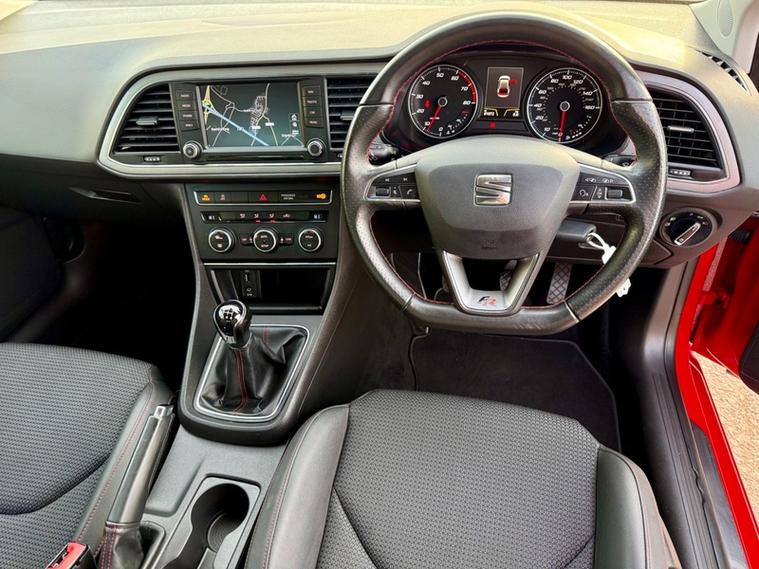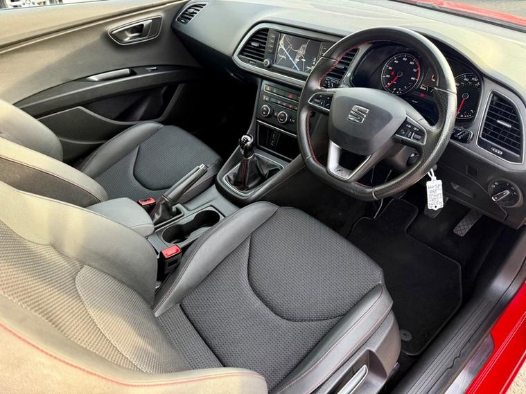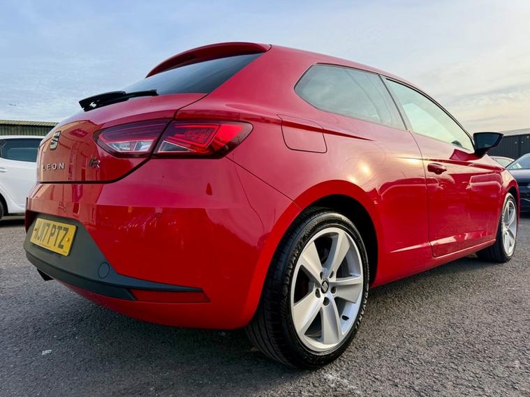 This 2017 SEAT Leon EcoTSI FR Technology offers an impressive 58 miles per gallon, making it a wonderfully economical choice. This Euro 6 compliant model features a responsive 1.4 litre petrol engine and is presented in the sought after FR Technology trim. Inside, you will find Easy Entry front seats for convenient access, a dual zone climate control system to keep everyone comfortable, and a navigation system complete with Bluetooth connectivity for seamless entertainment and communication on the go. The exterior is enhanced by full LED headlights, providing excellent visibility, and rear parking sensors to assist with manoeuvring., , The SEAT Leon EcoTSI FR Technology excels with its performance and practicality. Its acceleration from 0 to 62 miles per hour in just 7.9 seconds demonstrates its spirited drive, while its low CO2 emissions highlight its environmental consideration. Furthermore, the generous boot space ensures you have ample room for luggage or shopping, making this Leon a versatile companion for both daily commutes and longer journeys. These combined attributes indicate how this vehicle offers a superior experience compared to other similar cars on the market., 3 months warranty, Next MOT due 17/03/2027, Last serviced on 31/01/2026 at 80, 282 miles, Full service history, Part leather interior, 5 seats, Red, 3 owners, 12V Power Supply in Centre Console, 17in Alloy Wheels - Dynamic, 3.5in Drivers Display, 7 Airbags, ABS - Anti-Lock Braking System - TCS - Traction Control System, Active Front Head Restraints and 3 Rear Head Restraints, Alarm - Perimeter and Interior Monitoring with Back-up Horn and Tow-Away Protection, Aluminium Front Door Sill Trims with FR Logo, Body-Coloured Door Handles, Body-Coloured Door Mirrors with Integrated LED Indicators, Boot Storage Net, Bumpers - Exclusive FR Front and Rear, Cargo Rings in the Boot, Cruise Control, Dark Tinted Rear Windows, Driver and Passenger Seat Height Adjustment, Driver and Passenger Sunvisor with Covered and Illuminated Mirrors, Drivers Seat Lumbar Adjustment, Dual Zone Climate Control, ESC - Electronic Stability Control and Tyre Pressure Warning Light Indicator, Easy Entry Front Seats, Electric Parking Brake Including Autohold Function, Electrically Folding Door Mirrors, Electro-Mechanical Power Steering, Electronic Differential Lock System - XDS, Emergency Tyre Repair Kit, Exhaust Pipe - Twin, Front Assist with Pedestrian Protection, Front Seat Back Storage Pockets, Front Sports Seats, Front and Rear Electric Windows, Fuel Filler Flap linked to Central Locking, Full LED Headlights, Full Link, Head Restraints - Height Adjustable Front, High Centre Console, High Gloss Black B and C Pillars, Hill Hold Control, ISOFIX Points in Outer Rear Seats with Top Tether Anchorage Points, Illuminated Glovebox, Instrument Lighting with Brightness Control, Interior Chrome Detailing, Leather Gear Knob, Lights Left On Warning Buzzer, Low Fuel Warning Light, Lower Suspension - 15mm, Media System Plus, Multi Coloured Ambient Lighting, Multi-Collision Braking System, Navigation System, Outside Temperature Gauge, RPM Counter, Radiator Grille Frame in Chrome, Radiator Grille in Black, Reading Lights Front and Rear with Ambient Spots - Boot Lights and Illuminated Foot Area, Rear Parking Sensors, Remote Central Locking with Deadlocks, SEAT Drive Profile, Seatbelt Reminder - Front, Seats - Passenger Lumbar Adjustment, Split Folding Rear Seats - 60-40, Sports Suspension, Steering Wheel - Flat-Bottomed Perforated Leather with Red Stitching and FR Logo, Storage Box Under Driver and Front Passenger Seat, Trip Computer, Two Remote Keys with Window Open-Close - Door Mirror Folding and Boot Opening Functionality, AS WE ARE AN AA CARS DEALER THIS VEHICLE COMES WITH 12 MONTHS AA BREAKDOWN COVER.