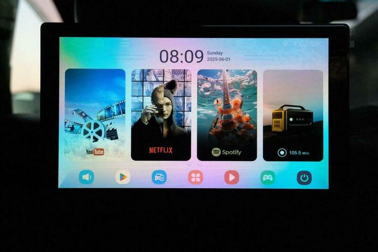 This example benefits from a professionally integrated front navigation system with Apple CarPlay and Android Auto, designed to retain the original factory look, an important feature for Japanese imports. Rear passengers are also equipped with entertainment screens featuring Apple CarPlay and Android Auto, complete with headphones.