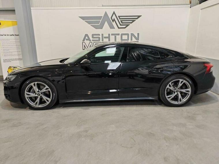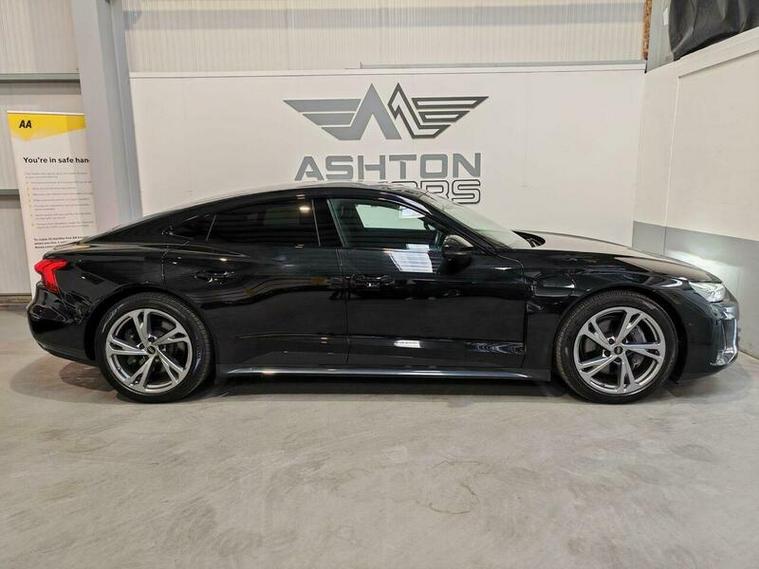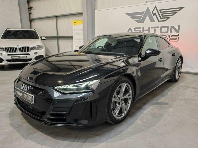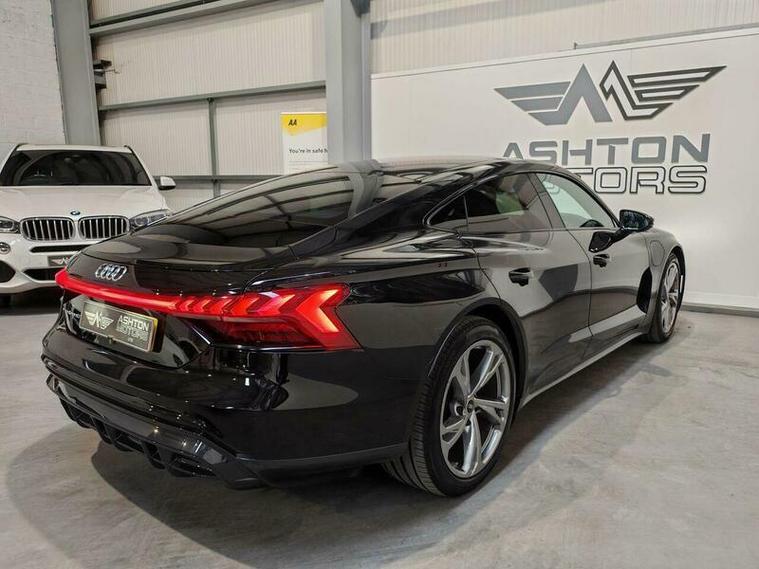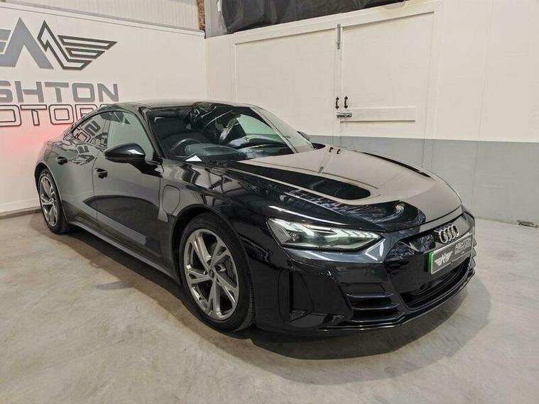This 2022 Audi e-tron GT boasts a full dealership service history and has had only one owner from new, offering excellent provenance. This electric vehicle features a four wheel drive drivetrain and a 93 kWh battery, providing a maximum range of 303 miles when new. Charging at home with a 7kW charger will take approximately 14 hours, while rapid public charging can take the battery from empty to 80% in just 24 minutes. The vehicle comes with 12 months MOT for your peace of mind. Notable features include the Comfort and Sound Package with LED headlights and a 360 degree camera for parking assistance, along with a radiator grille painted in body colour.
