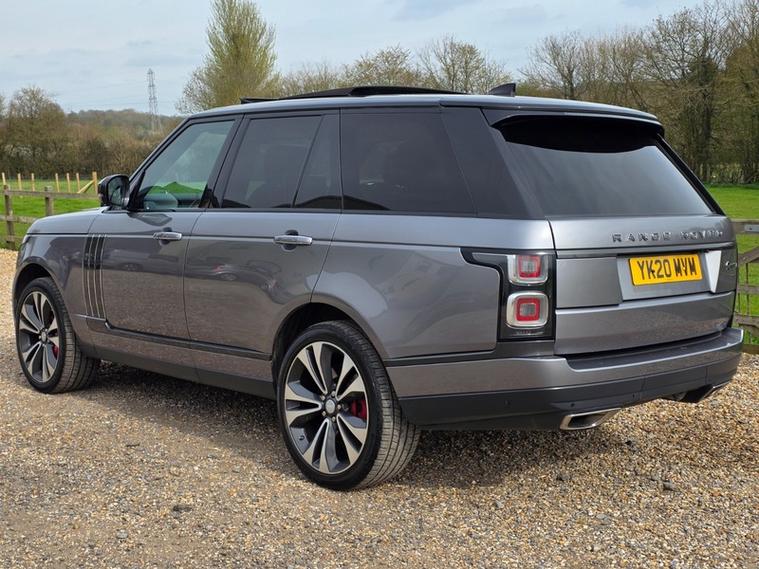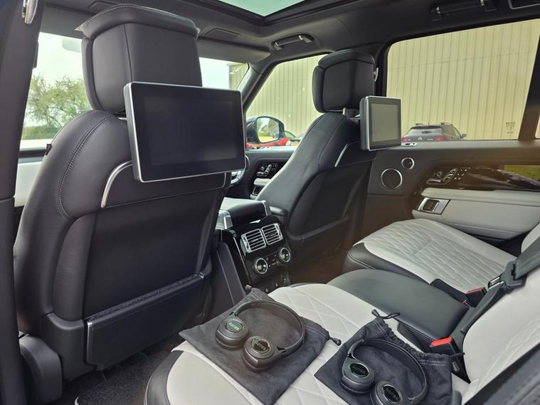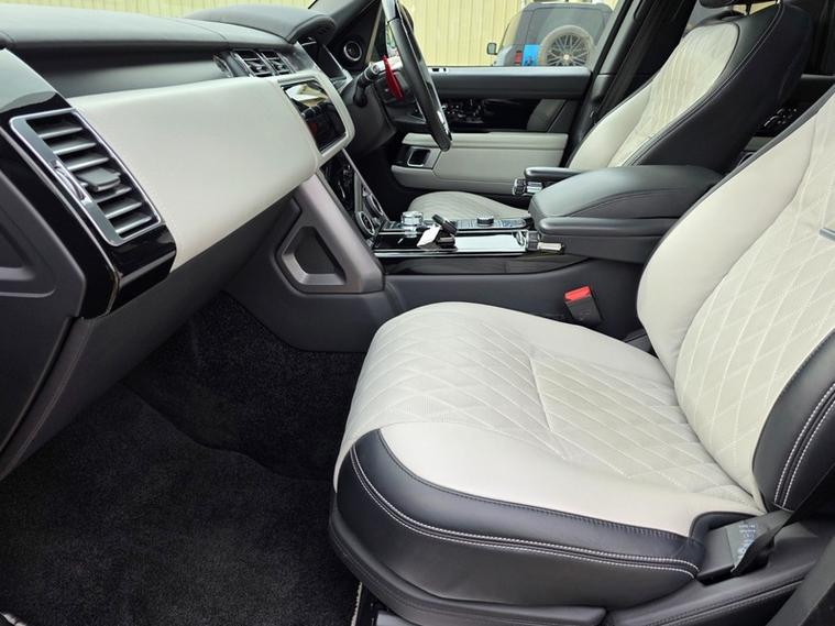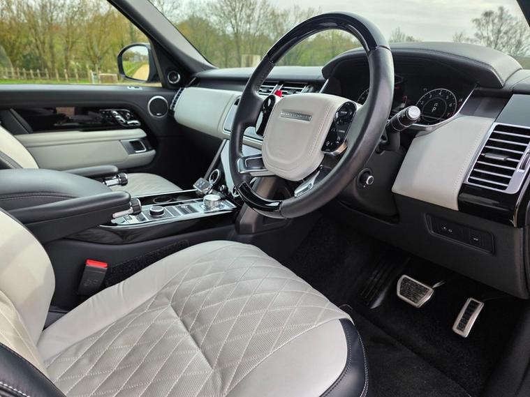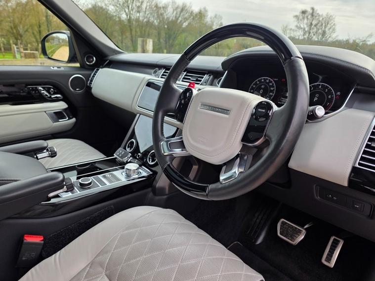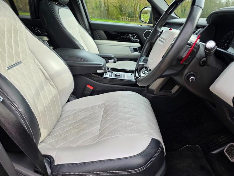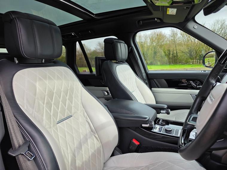 LAND ROVER RANGE ROVER 5.0 SV AUTOBIOGRAPHY FINISHED IN THE SUPERB EIGER GREY. THE IMPRESSIVE SPEC LIST INCLUDES RWO TONE QUILTED LEATHER SEATS/MASSAGE FRONT AND REAR SEATS/HEATED AND COOLED SEATS/EBONY LEATHER HEAD LINING/OPENING PANORAMIC ROOF/ELECTRIC DEPLOYABLE TOW BAR/STEERING WHEEL MOUNTED GEAR SHIFTERS/REAR ENTERTAINMENT/CENTER CONSOLE FRIDGR/FIRST CLASS LOUNGE AND MORE.