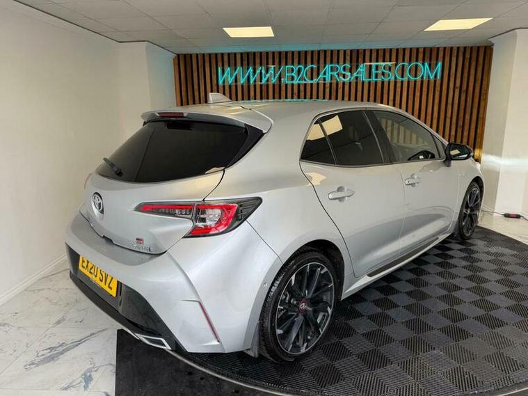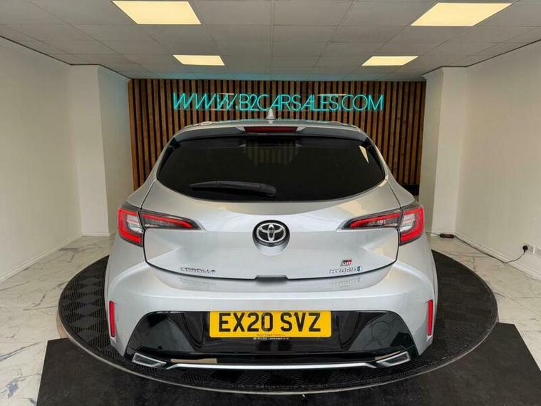 This 2020 Toyota Corolla VVT-h GR SPORT boasts a full dealership service history, with its last service completed on 2026-03-20 at 55528 miles, offering excellent provenance. This Euro 6 compliant model features a 1.8L petrol hybrid engine and comes with a 6 month warranty and 2 keys for your peace of mind. It has had only one previous owner. Notable features include smartphone integration, Toyota Safety Sense cruise control, front and rear parking sensors with reverse camera for easier manoeuvring, a head up display to keep your eyes on the road, and automatic headlights.
