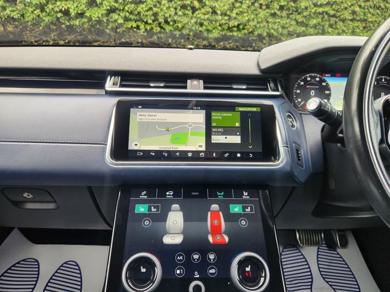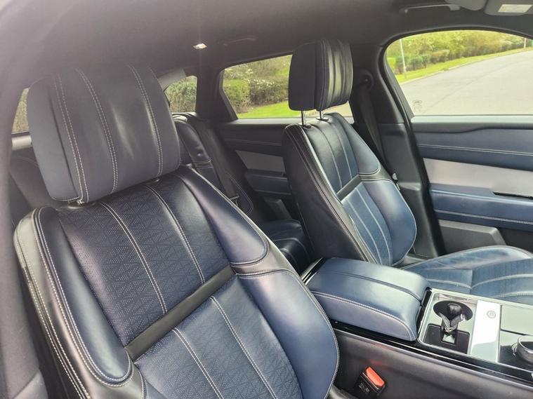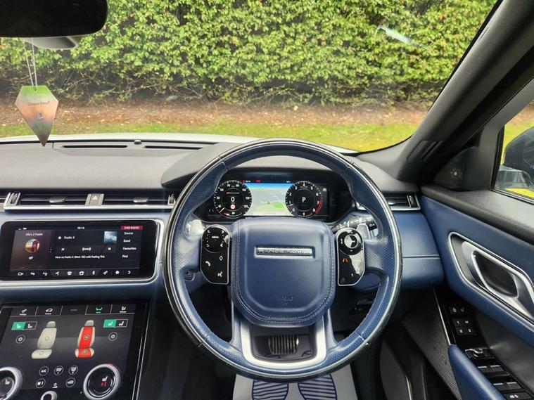 Comes with 3in TFT Full Digital Instrument Cluster, 20-Way Powered Seats with Driver-Passenger Memory - Massage and Heated-Cooled Front, 21in Alloy Wheels - 10 Spoke - Style 1033 with Satin Dark Grey Finish, 325mm Front Brakes, 360 Degree Parking Aid, 40-20-40 Split Fold Rear Seat, Acoustic Laminated Windscreen, Adaptive Cruise Control with Stop and Go, Adaptive Front Lighting, Air Quality Sensor, All Season Tyres, Auto-Dimming - Power Fold - Heated Door Mirrors with Approach Lights, Auto-Dimming Interior Rear View Mirror, Automatic Headlight Levelling, Automatic Headlights, Automatic High Beam Assist, Blind Spot Assist, Bluetooth Connectivity, Body Coloured Roof, Bright Metal Pedals, CBC - Cornering Brake Control, Coil Suspension, Cornering Lights, DAB - Digital Audio Broadcast, DSC - Dynamic Stability Control, Driver Condition Monitor, EBD - Electronic Brake-Force Distribution, EPB - Electronic Park Brake, ETC - Electronic Traction Control, Ebony Headlining, Electrically Adjustable Steering Column, Emergency Braking, Extended Leather Upgrade, Flush Deployable Door Handles, Front Fog Lights, HSE Badge, Headlight Powerwash, High Speed Emergency Braking, Illuminated Vanity Mirrors, InControl Apps, InControl Remote, Interactive Driver Display, Interior Lighting, Keyless Entry, Lane Keep Assist, Low Traction Launch, Matrix LED Headlights with Signature DRL, Meridian Surround Sound System 825W, Metal Front Treadplates with R-Dynamic Branding, Metal Loadspace Scuff Plate, Morzine Headlining, Navigation Pro, Open Differential with Torque Vectoring by Braking, P250 Badge, Park Assist, Passive Front Headrests, Passive Suspension, Power Socket Pack 1, Powered Gesture Tailgate, Pro Services and Wi-Fi Hotspot, R-Dynamic Exterior Pack, RSC - Roll Stability Control, Rear Centre Headrest, Rear Traffic Monitor, Rear View Camera, Rear Wash Wiper, Seat Belt Reminder, Shadow Aluminium Trim Finisher, Standard IP End Caps, TPMS - Tyre Pressure Monitoring System, TSA - Trailer Stability Assist, Tailgate - Boot Lid Spoiler, Terrain Response with Dynamic Program, Torque Vectoring, Traffic Sign Recognition and Adaptive Speed Limiter, Two-Zone Climate Control, Velar and R-Dynamic Badge, Voice Control