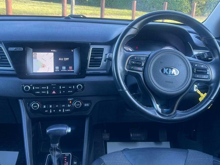 This 2017 Kia Niro h GDi 2 is a clear vehicle history example, offering a smart choice for your next car. Powered by a 1.6 litre petrol hybrid engine, this Euro 6 compliant model boasts impressive efficiency. Inside, you'll find comfort and convenience with Dual Automatic Air Conditioning featuring an ioniser and climate control, alongside automatic headlights for effortless driving. Parking is made simpler with a reversing camera system and rear parking sensors, while the Bluetooth system with voice recognition and music streaming keeps you connected on the go.