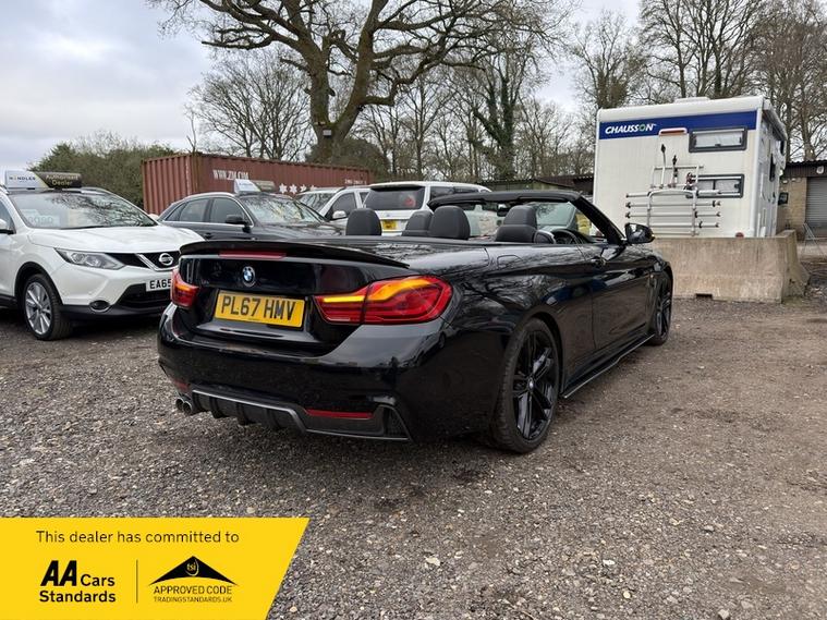 President Motors Ltd are proud to present this truly cherished and well maintained FACELIFT LCI 2017 (67 Reg) BMW 4 Series 2.0d M Sport Auto CONVERTIBLE Euro 6 (ULEZ COMPLIANT) - a stylish, comfortable, sporty, reliable and practical hard top convertible. Powered by a smooth 2.0 diesel engine paired with a 8 speed ZF AUTOMATIC gearbox and paddle shifters. It is HPI CLEAR. Whether you?re seeking an economical motorway cruiser, or a striking premium convertible, this 4 Series Convertible offers German robustness, a sleek and wide silhouette, pleasingly low insurance and running costs