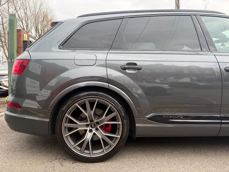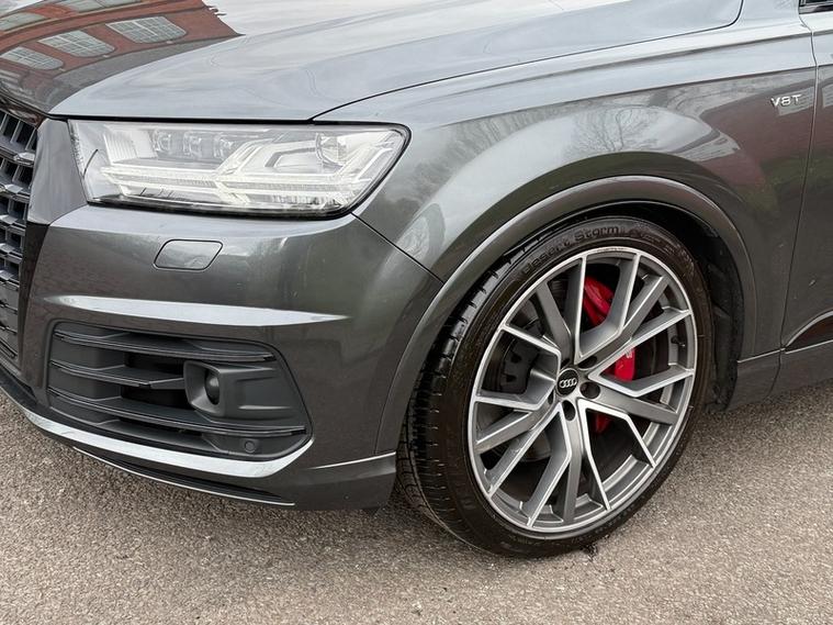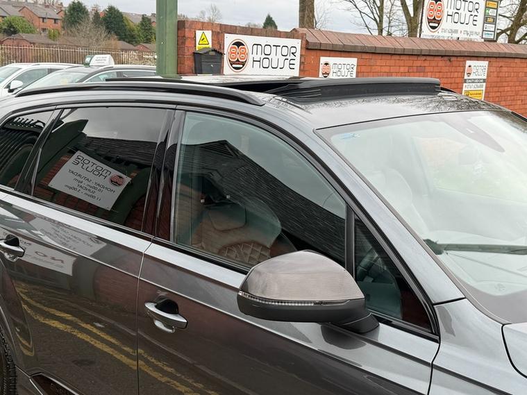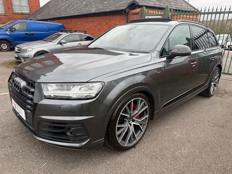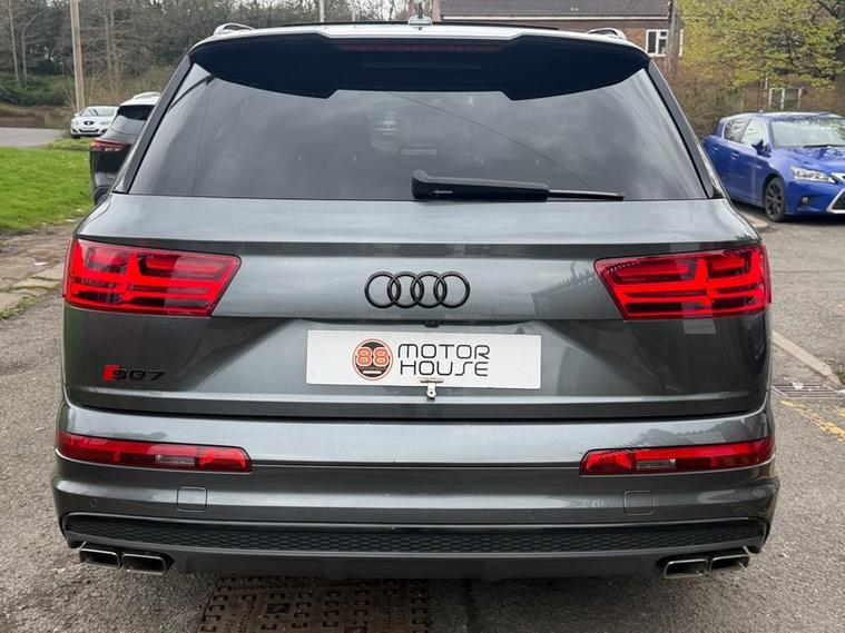 +++WOW+++ WHAT AN ABSOLUTE CRACKING EXAMPLE OF THIS STUNNING 2017 (late 67) AUDI SQ7 4.0 TDI V8 TIPTRONIC QUATTRO EURO 6 MODEL, FULLY DOCUMENTED AUDI DEALER SERVICE HISTORY RECORD (will be serviced by Audi prior to handover), IMMACULATE LOW MILEAGE EXAMPLE WITH ONLY 2 FORMER KEEPERS FROM BRAND NEW, MASSIVE SPEC LIST WITH ALL THE RIGHT PACKS INCLUDING TECH PACK WITH CONNECT PACKAGE 3 (rare), DRIVING DYNAMICS SPORTS PACK, SEAT PACK, DRIVERS ASSISTANCE PACK INCLUDING ADAPTIVE CRUISE CONTROL (rare), TOUR PACK, PANORAMIC ROOF, AUDI MATRIX LED HEADLIGHTS WITH DYNAMIC INDICATORS, HEAD UP DISPLAY, VIRTUAL COCKPIT, EXTERIOR FOLDING HEATED MEMORY MIRRORS, AUDI PHONE BOX, ALL WHEEL STEER (extremely rare), QUATTRO WITH SPORTS DIFF, RED CALIPERS WITH S LOGO, INTERIOR AMBIENT LIGHTING PACK, MF SPORTS HEATED STEERING WHEEL, FRONT SEATS WITH MEMORY FUNCTION, HEATED FRONT AND REAR SEATS, SPORTS SEATS IN FRONT, DYNAMIC ROAD SIGN DISPLAY, DIAMOND CUT 22' ALLOY WHEELS WITH PREMIUM BRANDED TYRES ALL AROUND WITH 7MM THREAD STILL REMAINING (almost new), FULL VOLCANO CROSS STITCHED LEATHER UPHOLSTERY, 2 REMOTE KEYS, REVERSE CAMERA, NEW SIDE STEPS WILL BE FITTED THIS WEEK, CARBON MIRRORS AND SO MUCH MORE, PRESENTED IN THE BEST COLOUR OF METALLIC DAYTONA GREY PEARL EFFECT, +++CURRENTLY BEING USED BY OUR DIRECTOR, MILEAGE WILL INCREASE, PLEASE CALL FOR EXACT MILEAGE+++, SUPPLIED WITH 6 MONTHS NATIONWIDE PARTS AND LABOUR WARRANTY AND 12 MONTHS AA BREAKDOWN COVER FOR YOUR COMPLETE PEACE OF MIND, ARRIVED FRESH IN FROM AUDI MAIN DEALERS WITH A BOOK PACK FULL OF INVOICES/BILLS THIS AUDI SQ7 HAS BEEN LOVED, ALL ORIGINAL AUDI HANDBOOKS AND MANUALS PRESENT, VIEWING HIGHLY RECOMMENDED, 1ST TO SEE WILL DEFINITELY BUY, PART EXCHANGE WELCOME, WE ACCEPT ALL CREDIT/DEBIT CARDS, VISIT dealer's website FOR FULL STOCKLIST OR COME VISIT OUR PREMISES AT: CICERO STREET, SHAW ROAD, OLDHAM, OL1 4AW, TELEPHONE 01616232171 OR 01616232171