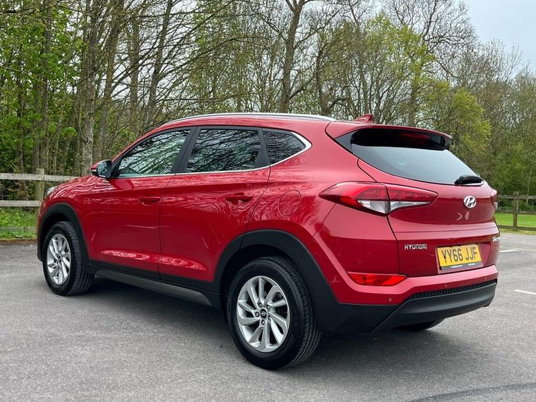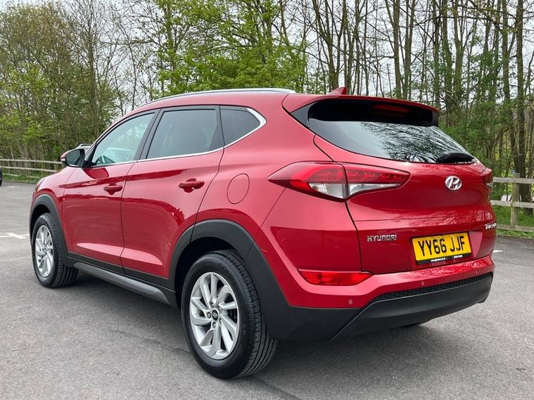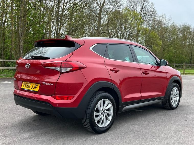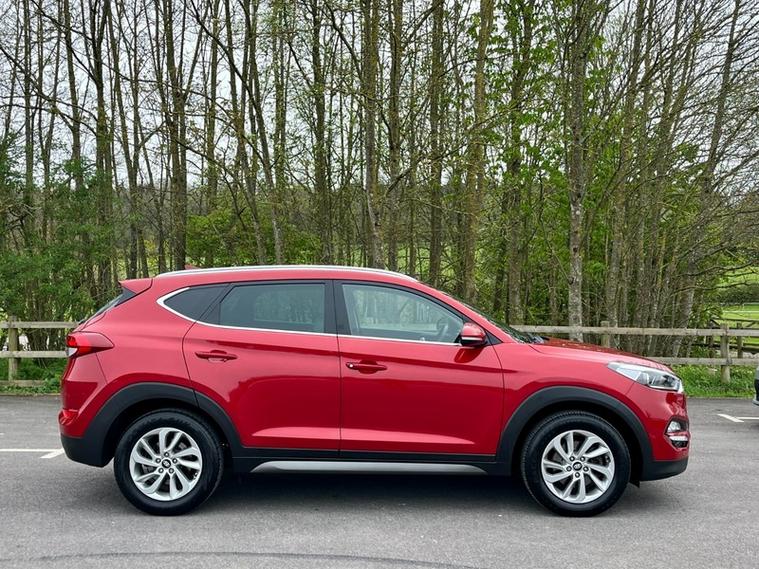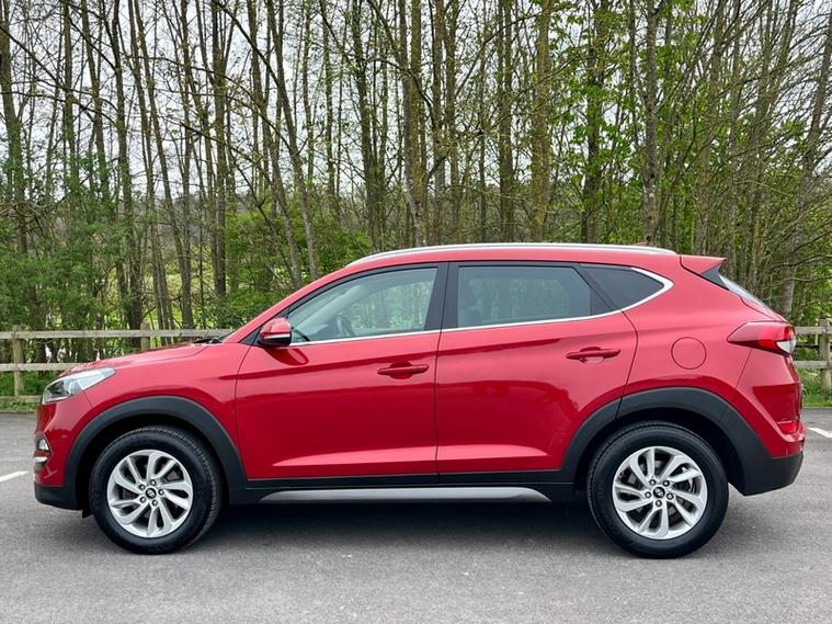 We are delighted to offer this Superb Hyundai Tucson finished in red metallic. Having covered only 40500 miles it benefits from a Full Service History (7 stamps up to 38669 miles on the 05/11/2025). Euro 6, ULEZ Compliant, **£35 TAX** 2 Former Keepers, 2 keys, MOT 10/06/2026.