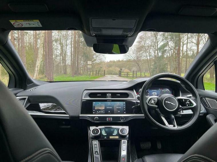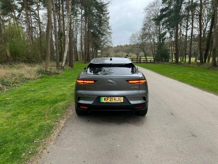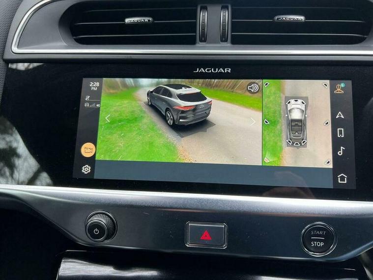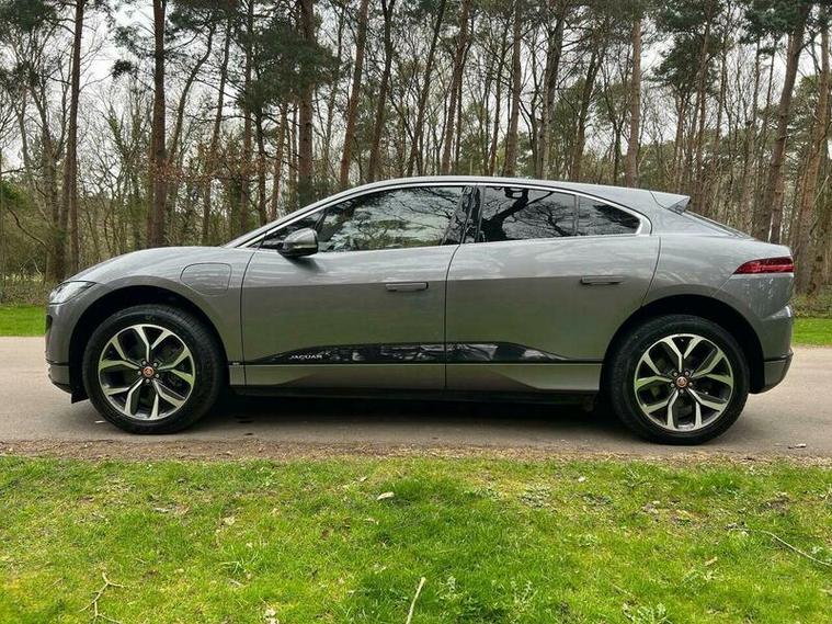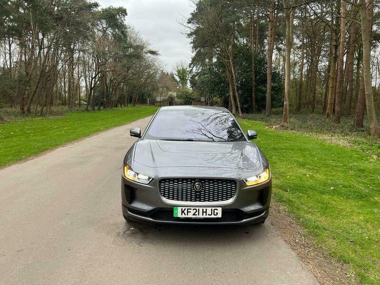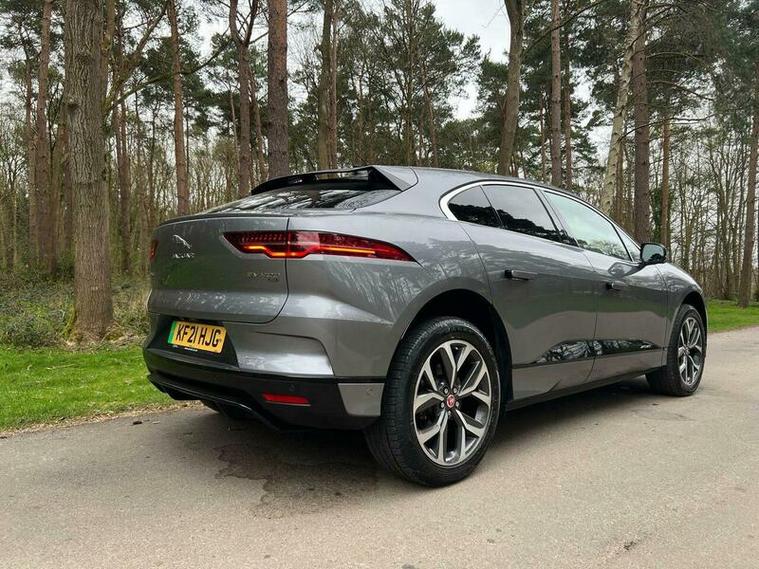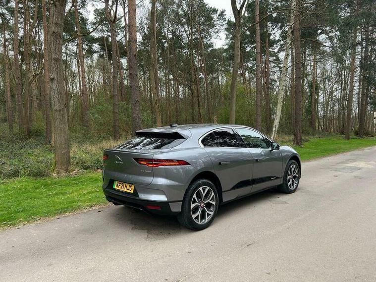 This 2021 Jaguar I-PACE 400 SE boasts an exceptionally clear vehicle history and a full service record, ensuring peace of mind for its next owner. This electric All Wheel Drive model features a substantial 90 kWh battery, offering a maximum range of 280 miles when new. Its SE trim level is complemented by desirable features such as 20-inch split spoke alloy wheels in technical grey with a polished finish, a Meridian 3D surround sound system for an immersive audio experience, and a heated steering wheel for added comfort. For effortless manoeuvring, it includes front and rear parking aid, further enhanced by a 360-degree surround camera system.