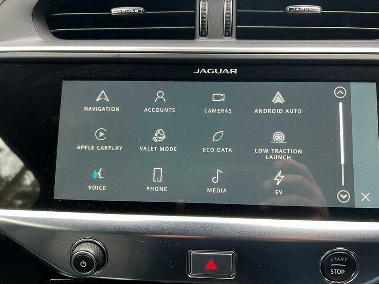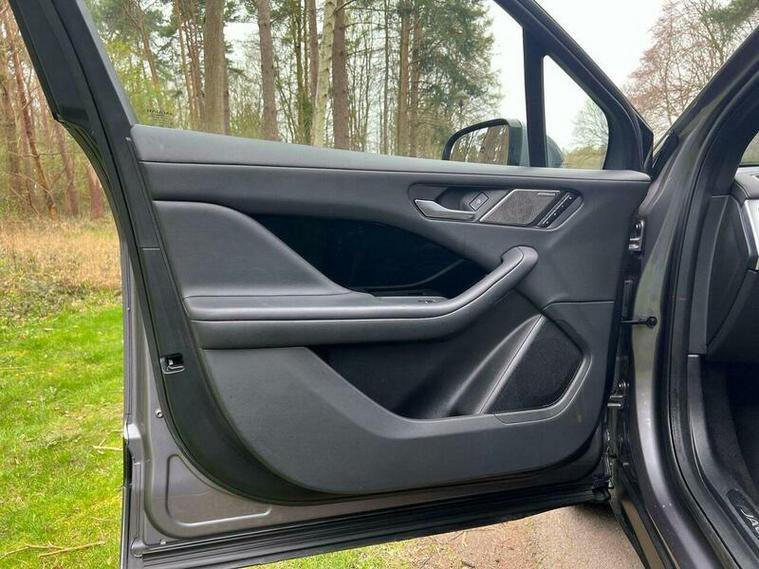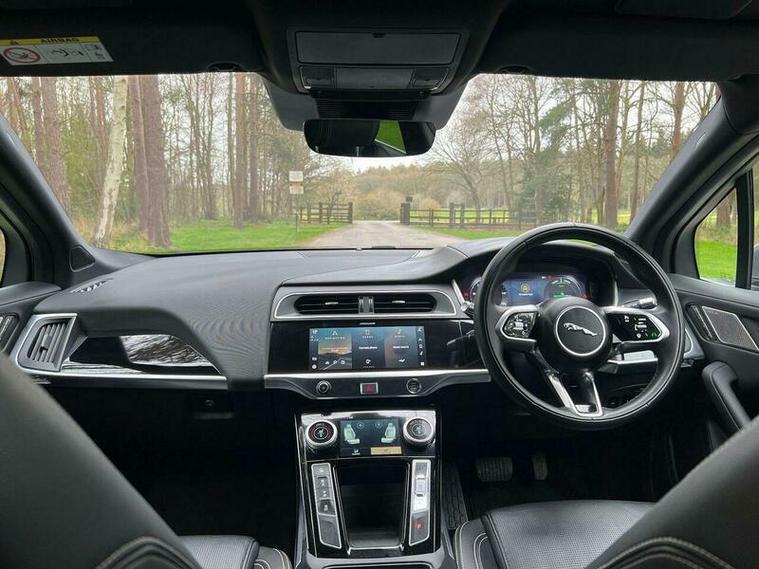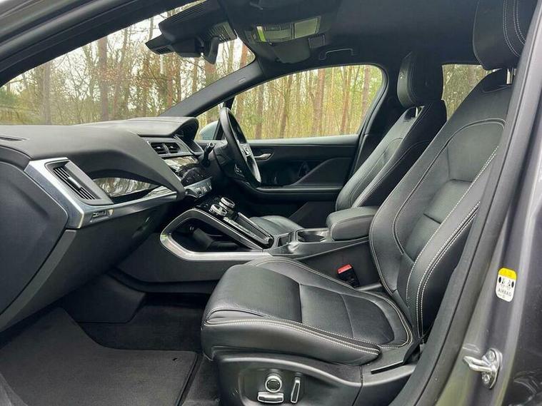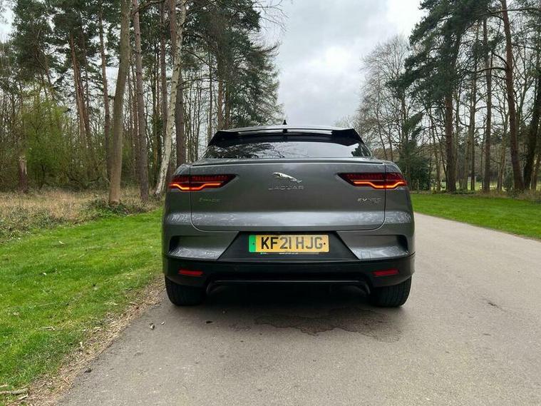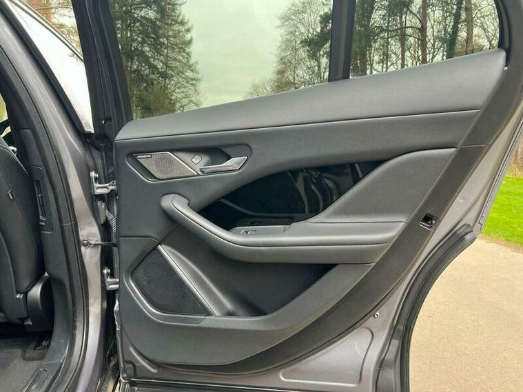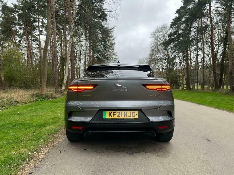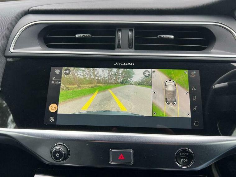 This 2021 Jaguar I-PACE 400 SE boasts an exceptionally clear vehicle history and a full service record, ensuring peace of mind for its next owner. This electric All Wheel Drive model features a substantial 90 kWh battery, offering a maximum range of 280 miles when new. Its SE trim level is complemented by desirable features such as 20-inch split spoke alloy wheels in technical grey with a polished finish, a Meridian 3D surround sound system for an immersive audio experience, and a heated steering wheel for added comfort. For effortless manoeuvring, it includes front and rear parking aid, further enhanced by a 360-degree surround camera system.