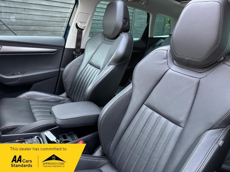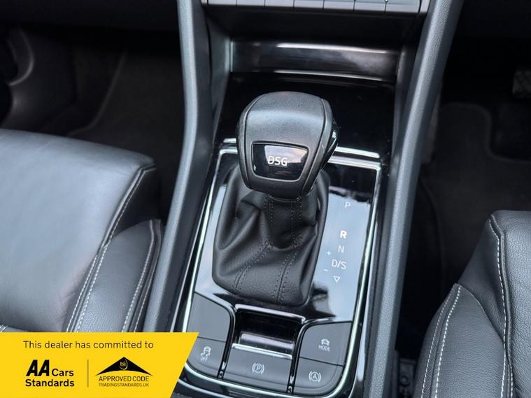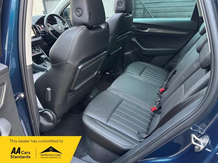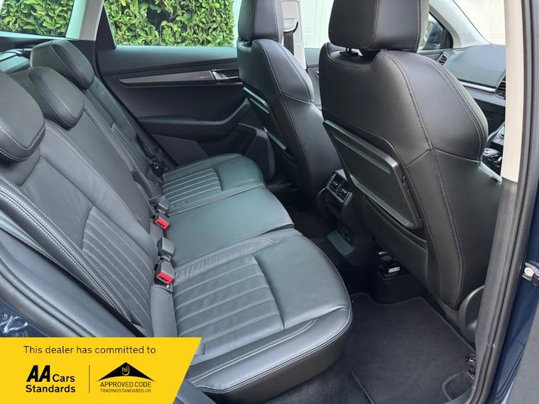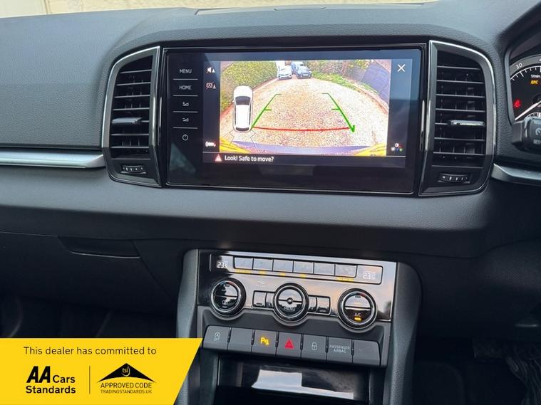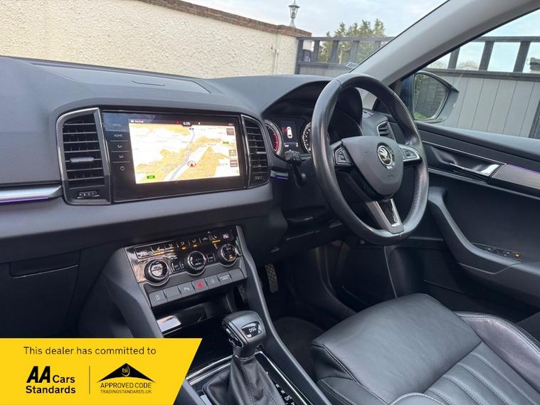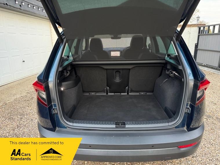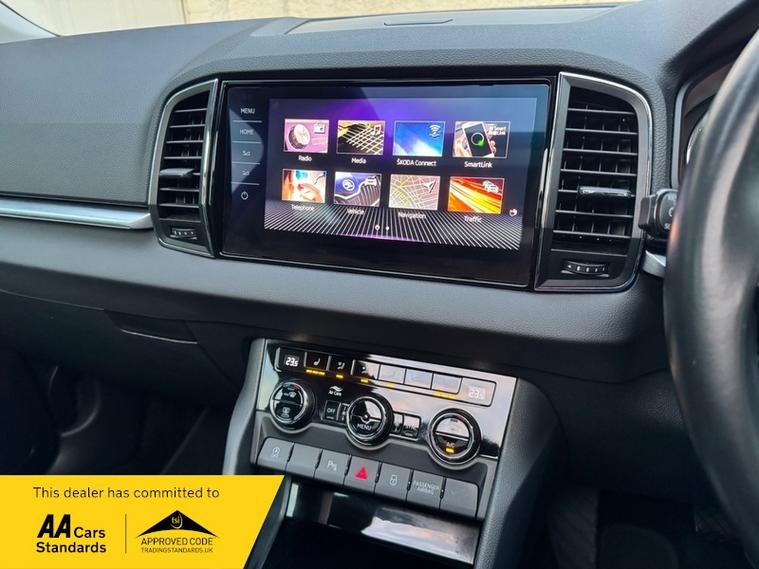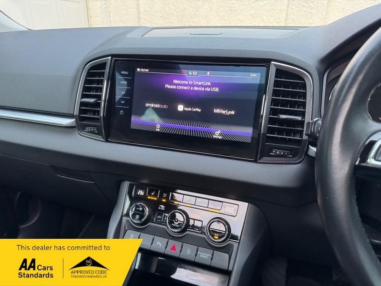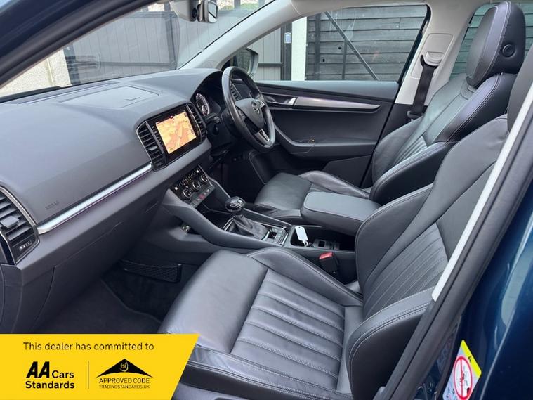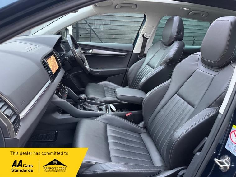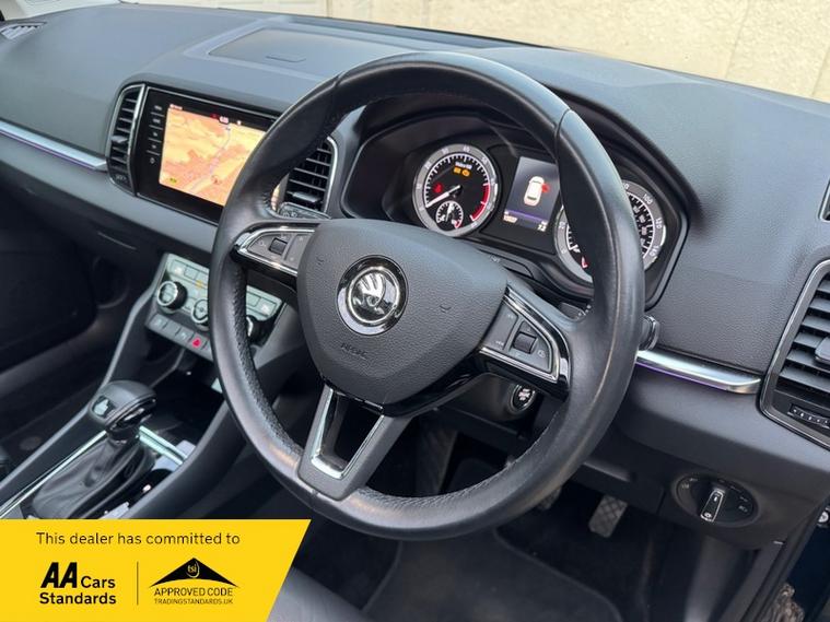 LOW MILEAGE 15, 000 MILES WITH A HUGE SPEC, Registered 28th September 2019 on a 69 plate, Petrol Blue Metallic With RARE FULL BLACK LEATHER INTERIOR, RARE PANORAMIC OPENING GLASS ROOF, 1 PREVIOUS OWNER, FULL VW SERVICE HISTORY, SERVICED AT VW 13/10/2020 @ 3, 437, 24/09/2021 @ 5, 764, 04/07/23 @ 11, 951, 28/06/24 @ 13, 178, 24/09/25 @ 14, 913, REVERSING CAMERA, APPLE CAR PLAY, KEYLESS GO, KEYLESS ENTRY, AUTOMATIC DSG ALSO WITH PADDLE CHANGE ON STEERING WHEEL, HEATED SEATS, FRONT AND REAR PARKING SENSORS, LEATHER CENTRE ARMREST, ELECTRIC MEMORY DRIVERS SEAT, ELECTRIC HEATED FOLDING MIRRORS, FRONT AND REAR FOG LIGHTS, ROOF RAILS IN CHROME, AIR CONDITIONING, DUAL CLIMATE CONTROL, REMOTE CENTRAL LOCKING, X2 REMOTE KEYS, 19 Inch ALLOY WHEELS, POWER BOOT, EURO 6, ULEZ COMPLIANT, PETROL, X4 Electric Windows, FINANCE AVAILABLE, 12 MONTHS AA BREAKDOWN COVER INCLUDED, TRADING STANDARDS APPROVED DEALER, STUNNING LOW MILEAGE SKODA KAROQ 1.5 TSI ACT EDITION 150 PS DSG IN EXCELLENT CONDITION WITH A HUGE SPEC. VIEWING BY APPOINTMENT, MOBILE 01494352785.