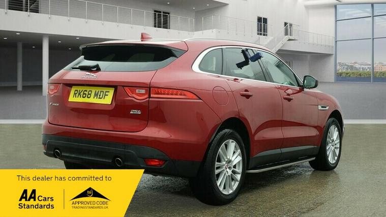 ARRIVING SHORTLY - Boasting exceptionally low mileage for its age, this 2018/68 Jaguar F-PACE P250i Portfolio Automatic 4 Wheel Drive presents a superb opportunity. This four wheel drive model, powered by a 2.0 litre petrol engine, meets Euro 6 emissions standards and features a clear vehicle history check. Jaguar Service History Showing 4 Services to 33, 700milrs. 12 Months New MOT will be applied.The Portfolio trim level enhances the driving experience with heated front seats, xenon headlights with LED signature, and convenient Bluetooth connectivity. A striking fixed panoramic roof adds to the sense of space and light within the cabin., , This F-PACE offers impressive performance, accelerating from 0 to 60mph in just 6.6 seconds, demonstrating its dynamic capability. The large boot space ensures practicality for all your needs, whether for daily errands or longer journeys. With a towing weight of 2400 kg, it is well equipped for various towing requirements. The 25t AWD badge signifies its capable all wheel drive system, setting it apart from many other vehicles in its class., 12 months MOT, Last serviced at 33, 700 miles, Full dealership history, Four wheel-drive, 5 seats, Metallic Italian Racing Red with Warm Charcoal Windsor Premium Leather, 2 owners, Upgrades - Touch Pro Navigation Pack with Meridian Digital Sound System - 380w, Panoramic Glass Sunroof with Electric Under Blind, 19in Alloy Wheels - 5 Spoke Style 5037, Privacy Glass, Jaguar Side Steps for Easy Access, Digital Dash, Perforated Windsor Leather - Ebony-Ebony, Standard Features - 10-Way Electric Front Seats, 10in Touch Pro, 19in Alloy Wheels - 7 Split-Spoke Style 7012, 2-Zone Climate Control, 25t AWD Badge, 3-Flash Lane Change Indicators, 325mm Front Brakes, 40-20-40 Split Fold Rear Seat, ABS - Anti-locking Braking System, AM-FM Radio, ASPC - All Surface Progress Control, Airbags - Front Side, Airbags - Full Length Side Window Curtain, Ambient Interior Lighting, Analogue Dials with Central TFT Display, Approach Illumination, Auto-Dimming - Power Fold - Heated Door Mirrors with Approach Lights, Auto-Dimming Interior Rear View Mirror, Bluetooth Connectivity, Bluetooth Streaming, Body-Coloured Rear Bumper with Grained Black Valance, Brake Pad Wear Indicator, Bright Metal Pedals, Centre Console - Side Stowage, Centre Console - Storage Surround Finishers - Satin Chrome, Centre Console with Armrest, Chrome Side Vents, Chrome Side Window Surround, Connect Pro, Cruise Control with Speed Limiter, Digital Audio Broadcast - DAB - Radio, Door Trim - Luxtec, Driver Condition Monitor, Dynamic Stability Control - DSC, Dynamic Volume Control, EBA - Emergency Brake Assist, ECO Driving Style Assistant, EPAS - Electric Power Assisted Steering, EPB - Electronic Parking Brake, Electric Windows - Front and Rear with One-Touch Open-Close and Anti-Trap, Emergency Braking, Etched Aluminium Trim Finisher, F-PACE Badge, Fixed Panoramic Roof, Front Airbags with Passenger Seat Occupant Detector, Front Bumper, Front Fog Lights, Front Headrests - Jaguar Leaper Embossing, Front Windscreen with Non-acoustic Layer, Front and Rear Parking Aid, Glovebox Finisher with Jaguar Script, Grained Black Door Claddings, Grained Black Grille with Chrome Surround, Green Tinted Glass, Headlight Power Wash, Headlining - Morzine - Light Oyster, Heated Front Seats, Heated Front Windscreen, Heated Rear Window, Hill Launch Assist, Hook in Loadspace, ISOFIX Rear, Illuminated Metal Treadplates with Brand-Name Script, InControl Apps, Interior Front Door Handles with Separate Locking Switches, Jaguar Script and Leaper, Jaguar Tyre Repair System, JaguarDrive Control, Keyless Entry, LED Tail Lights, Lane Keep Assist, Light Oyster Suedecloth Headlining, Loadbay - Luggage Tie Downs, Lockable Glovebox, Luxtec Wrapped Instrument Panel Topper with Wrapped Binnacle, Manually Adjustable Steering Column, Meridian Sound System - 380W, Metal Loadspace Scuff Plate, Navigation Pro, No Loadspace Storage Rails, Open Differential with Torque Vectoring by Braking, Outside Temperature Gauge, Overhead Lighting Console, Passive Front Head Restraints, Power Operated Child Locks, Power Sockets, Powered Tailgate - Boot Lid, Premium Carpet Mats, Pro Services and Wi-Fi Hotspot, Protect for Warranty Period, Rain Sensing Windscreen Wipers, Rear Air Vents, Rear Armrest with Twin Cupholders, Rear Camera, Rear Centre Headrest, Rear Fog Lights, Rear Metal Treadplates, Remote Premium for Warranty Period, Rotary Shifter, Satin Chrome Touchscreen Surround, Seat Belt Reminder, Seats - Luxury, Silver Roof Rails, Soft Grain Leather Sport Steering Wheel, Speed Proportional Steering, Start Up Sequence with Movement - Dials and Lighting, Steering Wheel - Black Paddles, Steering Wheel - Multi-Function, Torque Vectoring, Traffic Sign Recognition with Adaptive Speed Limiter, Trailer Stability Assist, Trip Computer, Twin Front Cupholders with Cover, Tyre Pressure Monitoring System, Unpainted Brake Calipers, Valet Mode, Variable Intermittent Wipers, Voice Control, Xenon Headlights with LED Signature, - For Further Information or to book an appointment to view - please call Roger direct on 01158863792 - Most times available by prior appointment