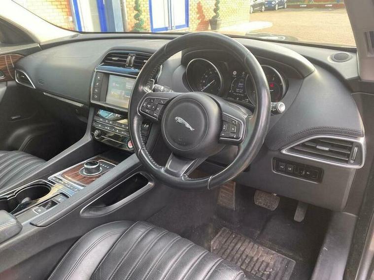 This 2016 Jaguar F PACE D180 Portfolio is a standout example, boasting a clear vehicle history check and having had only two owners. This impressive four wheel drive SUV is powered by a 2.0 litre diesel engine, meeting Euro 6 emissions standards. The Portfolio trim level ensures a premium experience, enhanced by notable features such as automatic headlights, Bluetooth telephone connectivity, and heated front seats for added comfort. Enjoy an open and airy cabin with the fixed panoramic roof, and benefit from the convenience of a rear view camera for easier parking.