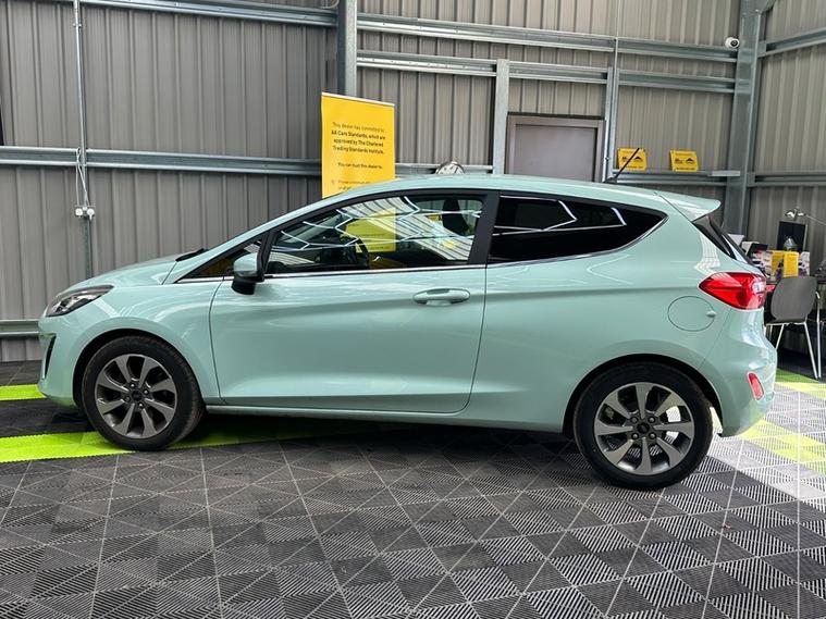 Please take a look at this Ford Fiesta 1.0T Eco Boost Zetec in a unique colour, which is in our stock. Vehicle is in great condition, in and out, drives very well. All tyres are in excellent condition. Comes with full service history, fresh service done recently by us on 01/04/2026 (oil, engine oil, oil filter, air filter, cabin filter, spark plugs). 2 owners - last owner since 2018, 2 keys. MOT expiry date 05/10/2026