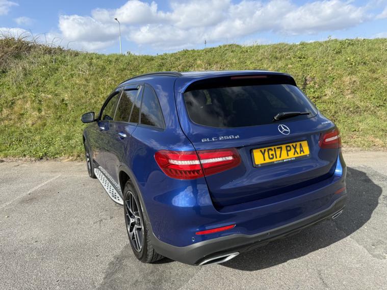 This Mercedes- Benz GLC AMG Line (Premium) in Blue comes with Service History and will have a new MOT before going out to it's new owner. A really great example of a very popular car The car is loaded with great spec including: Sat Nav, Touch Pad, Night Pack, Side Steps, Ambient Lighting, Front and Rear Sensors, Reversing Camera, Pan Roof, Heated Memory Seats and Much more. The has immaculate alloys and comes with 2 keys.
