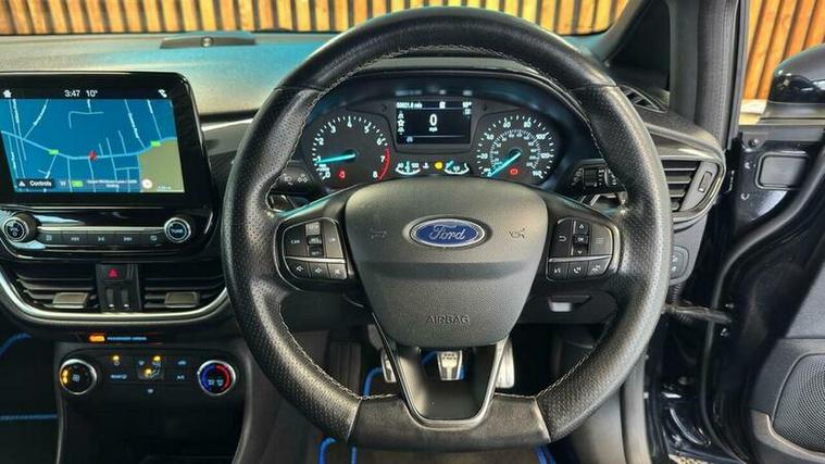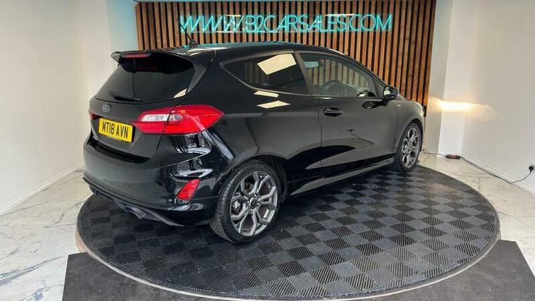 With recent service on 27/03/26 including new timing belt, water pump, brake pads annd brake discs and only two previous owners, this 2018 Ford Fiesta T ST Line offers a compelling package. Powered by an efficient 1.0L Euro 6 petrol engine, this model comes with a 3 month warranty and 2 keys for your peace of mind. Its MOT is valid until September 2026, and it features the desirable ST Line trim. You'll also find the advanced B and O PLAY In Car Audio Premium Sound System, complete with Ford SYNC 3 Navigation, Android Auto, and Apple CarPlay, enhancing your driving experience. The NCAP Pack includes automatic headlights, and manual air conditioning ensures comfort.