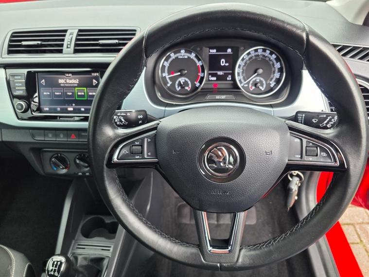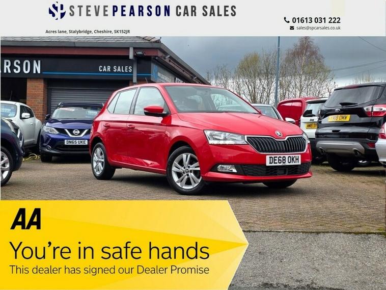 Steve Pearson Car Sales are Pleased to Present this Low Mileage Skoda Fabia 1.0 SE MPI 5 Door in Red. Only One Former Keeper. All usual Skoda refinements include.... ABS, Air conditioning, alarm, alloy wheels, central locking, electric windows/mirrors, power steering, adjustable steering, 12v power socket, USB input, Apple car play/android auto, Bluetooth, body coloured bumpers, brake assist, cruise control, cup holders, daytime running lights, engine immobiliser, front airbags, front fog lights, heated door mirrors, hill start assist, ISOFix anchor point, MP3, Parking sensors, DAB radio, touch screen media system, digital speedometer, steering wheel controls, traction control etc.....Looks and Drives Superb. This car comes with 2 Keys, professionally valeted and fully HPI checked. We welcome Part Exchange and can offer Great Finance Deals, Please take a look at our TESTIMONIALS On our Website and Buy In confidence from a long Established Family Firm at dealer's website where we have over 60 cars in stock, for more information please telephone or pop in for a cup of tea! Our showroom and floodlit forecourt are open 7 days a week, , Tameside's Finest Collection of Low Mileage Quality Cars