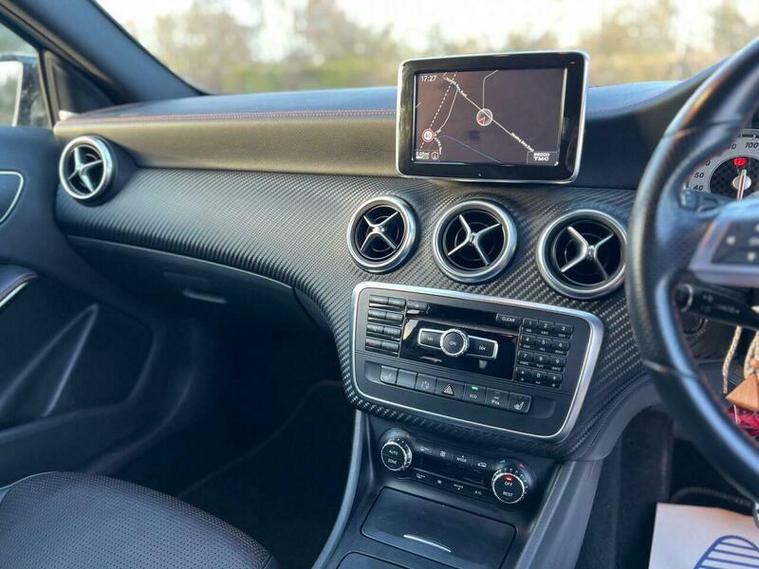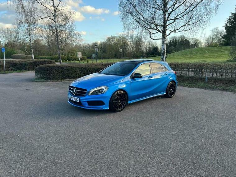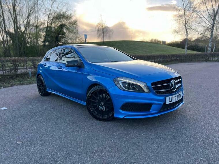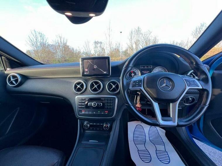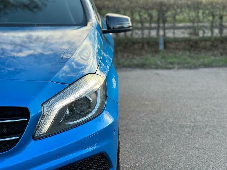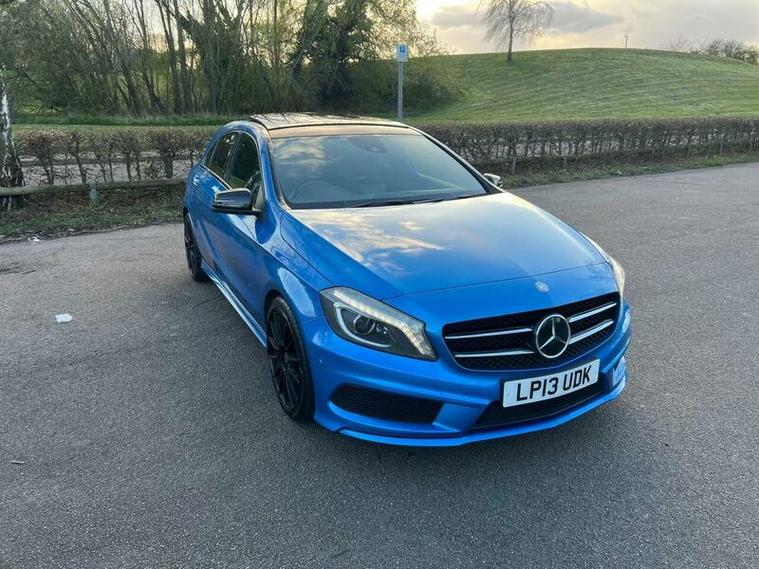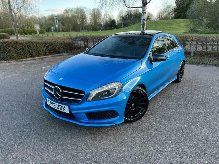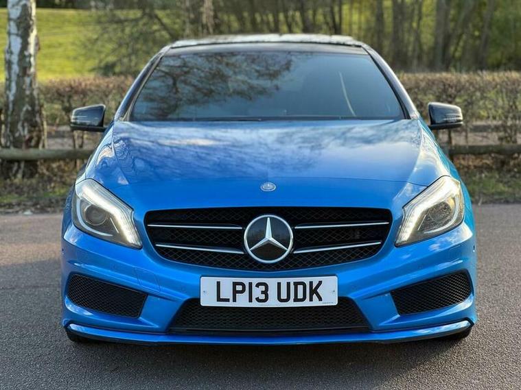 This 2013 Mercedes Benz A Class A200 AMG Sport is a Euro 6 compliant vehicle, offering a blend of style and performance. Its 1.6L petrol engine delivers an impressive 0-62mph acceleration in just 8.3 seconds, showcasing its dynamic capabilities. This AMG Sport trim level comes equipped with a host of desirable features, including a panoramic sliding sunroof that floods the cabin with light, and a reversing camera to aid with parking. For an enhanced audio experience, it boasts a Harman Kardon Logic 7 surround sound system, while automatic headlamp activation ensures optimal visibility. Connectivity is made simple with the Bluetooth interface for hands free telephone calls.
