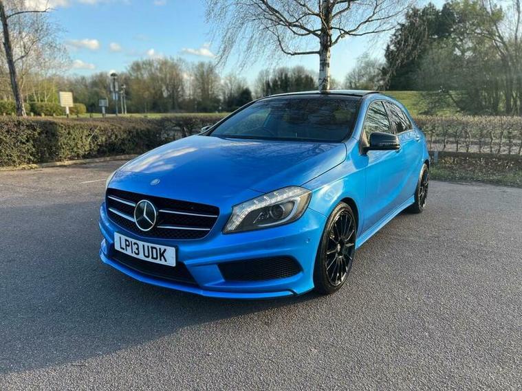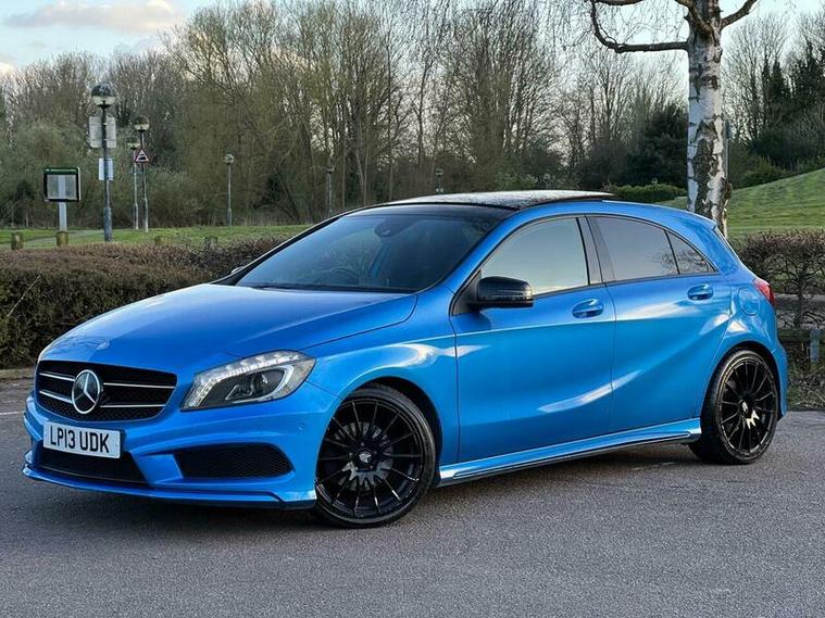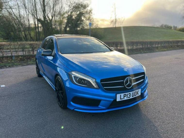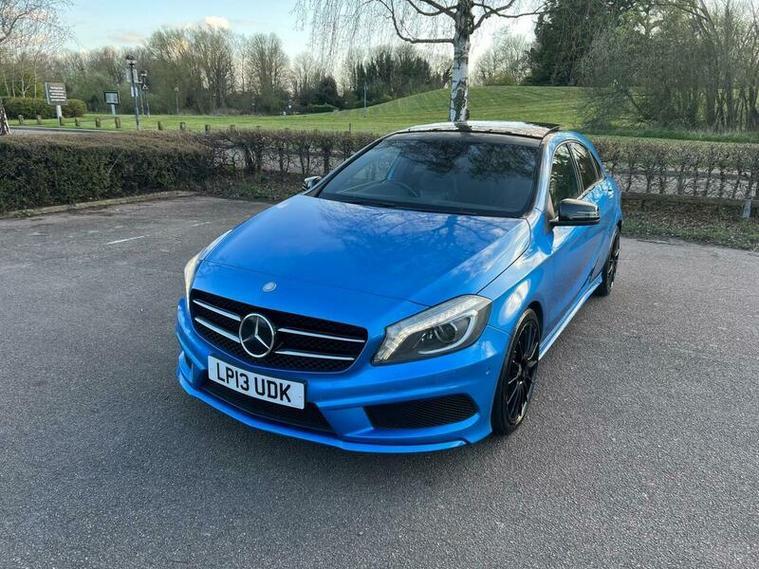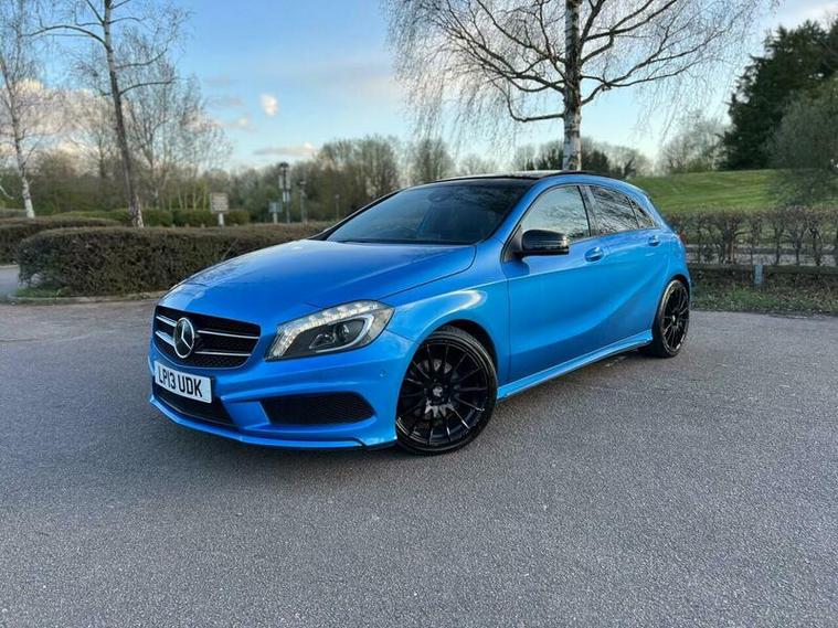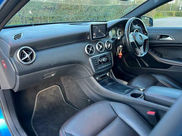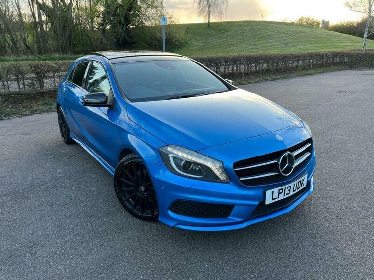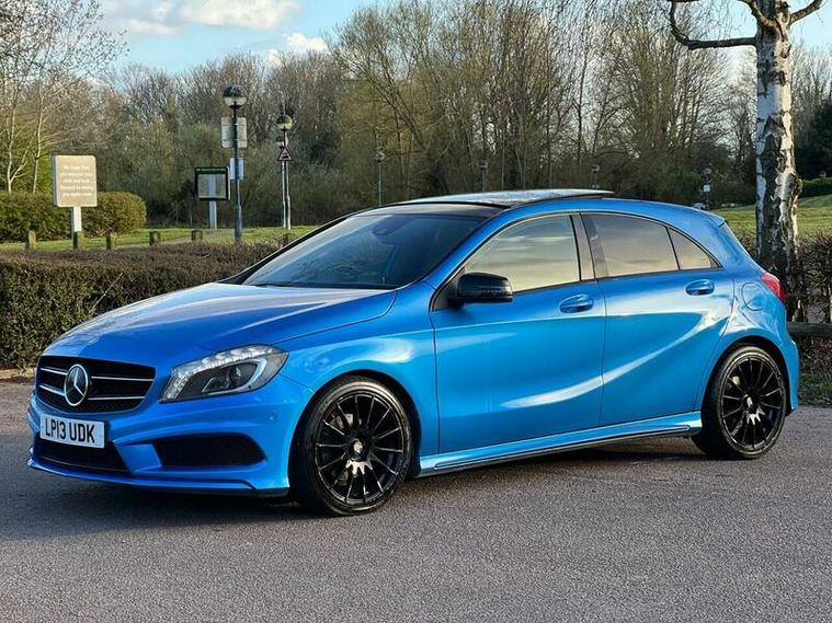 This 2013 Mercedes Benz A Class A200 AMG Sport is a Euro 6 compliant vehicle, offering a blend of style and performance. Its 1.6L petrol engine delivers an impressive 0-62mph acceleration in just 8.3 seconds, showcasing its dynamic capabilities. This AMG Sport trim level comes equipped with a host of desirable features, including a panoramic sliding sunroof that floods the cabin with light, and a reversing camera to aid with parking. For an enhanced audio experience, it boasts a Harman Kardon Logic 7 surround sound system, while automatic headlamp activation ensures optimal visibility. Connectivity is made simple with the Bluetooth interface for hands free telephone calls.