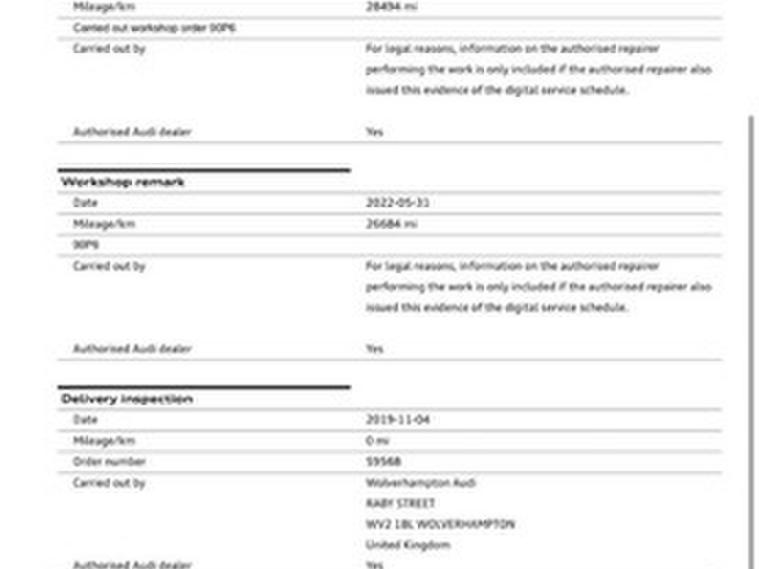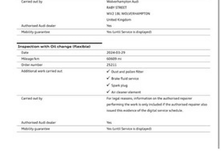 This car comes with 5 seats, White, 3 owners, 1 x USB-C and 1 x USB-A Charging Points, 10.25in Digital Instrument Cluster, 17in Alloy Wheels - 5-Twin Spoke Design - Partly Polished, 6 Passive Loud Speakers, ABS - Anti-Lock Braking System, Air Conditioning, Aluminium Trim for Control Switches - Air Vents and Digital Instrument Cluster, Anti Theft Locking Wheel Bolts, Anti-Theft Alarm, Audi Connect Emergency and Service with E-Call, Audi Drive Select, Audi Pre-Sense Front with Pedestrian and Cyclist Recognition, Audi Smartphone Interface, Audi Warranty 2 Years 60000 Miles, Auto-Dimming Rear-View Mirror, Bluetooth Interface, Body Coloured Side Sill, Centre Console with Two Cup Holders and 12V Socket, Cloth Headlining in Black, Cruise Control, DAB Digital Radio, Door Mirrors - Body Coloured, Door Mirrors - Electrically Adjustable and Heated with Integrated LED Side Indicators, Door Sill Trims - Aluminium with S Line Logo, Driver - Front Passenger - Front Side and Head Airbag System, Driver and Front Passenger Seats with Manual Height-Forwards and Backwards Adjustment, ESC - Electronic Stabilisation Control inc ABS - EBD - ASR - EDL, Electric Windows - Front and Rear, Electromechanical Power Steering, First Aid Kit and Warning Triangle, Front Passenger Airbag Deactivation Switch, Front Spoiler Clip - Rear Diffuser Clip in Matt Platinum Grey, Front and Rear Floor Mats, Gear Knob in Leather with Aluminium Trim, Head Restraints - Rear, Heat Insulating Glass - Windscreen and Side Windows, Heated Rear Windscreen, Hill Hold Assist, ISOFIX Child Seat Mounting for Front Passenger and Rear Outer Seats, Inlays in Polygon Structure - Silver Grey Diamond Paint - Accent Areas in Structure Grey Quartz Paint, Interior Lighting - Front and Rear Reading Lights and Luggage Compartment Light, LED Headlights with LED Rear Lights and Dynamic Rear Indicators, LED Interior Light Pack, Lane Departure Warning, Leatherette Handbrake Grip, Light and Rain Sensors, MMI Radio Plus with 8.8 MMI Colour Display Screen and MMI Touch, Manually Adjustable Lumbar Support in Front Seats, Pedals in Stainless Steel, Radiator Grille - Matt Titanium Black, Radiator Protective Grille Frame in Matt Aluminium Silver, Rear Fog Lights, Rear Parking Sensors, Remote Central Locking with 2 Fold Away Keys, S Line Badges on the Front Wings, S Line Exterior Bumpers, S Line Roof Spoiler, SD Card Reader, Seat Belt Height Adjustment for Front Seats, Seat Belt Monitoring, Side Air Inlet Frames in Titanium Black, Speed Limiter, Split Folding Rear Seat, Sport Suspension, Steering Wheel - 3-Spoke Leather - Multi-Function Plus with S Badging, Steering Wheel - Height and Reach Adjustable, Tool Kit and Jack, Tyre Pressure Warning Light, Tyre Repair Kit, Voice Control, Washer Fluid Level Indicator,