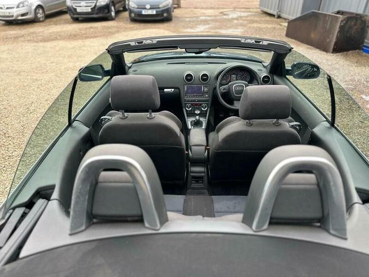 This Audi A3 Cabriolet TFSI Sport from 2012 offers a remarkable ownership history, having had only three previous owners. This stylish convertible features a 1.2 litre petrol engine and a Sport trim, complemented by 17 inch V design alloy wheels with a high gloss finish. For your comfort, it includes heated front seats and a Light and Rain Sensor Pack, which automatically activates the headlights. Navigating and entertainment are made easy with the CD, SatNav, Radio, and MP3 compatible system, while the Acoustic Parking System at the rear helps with manoeuvring.
