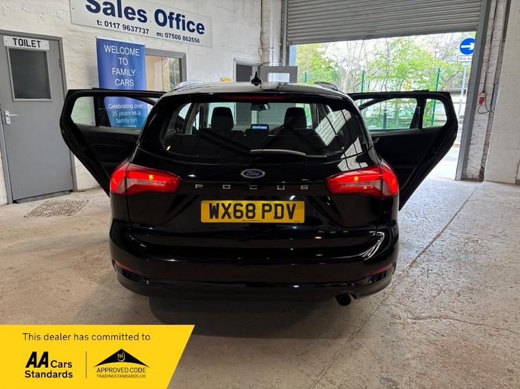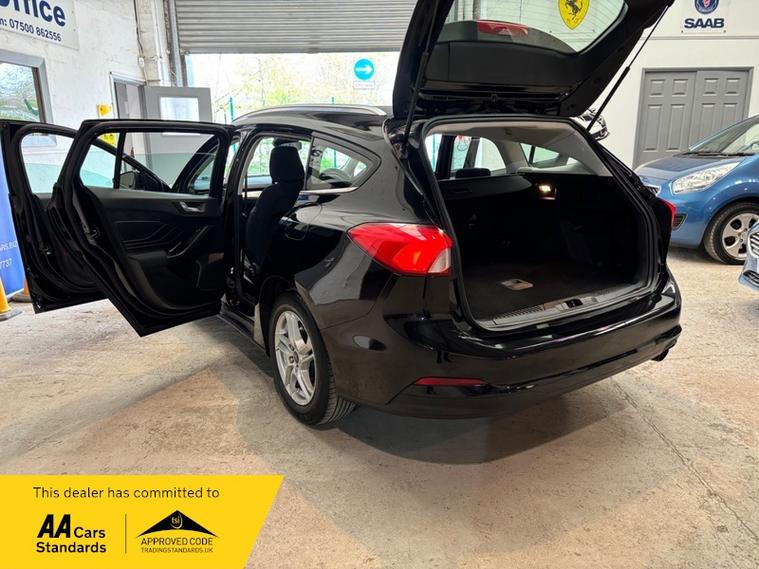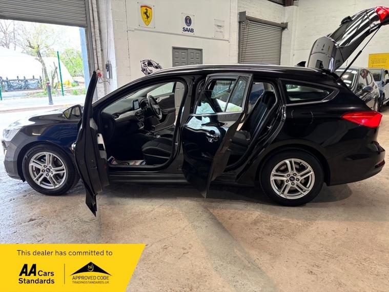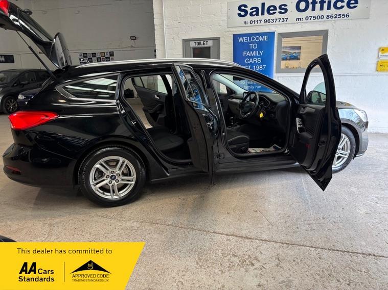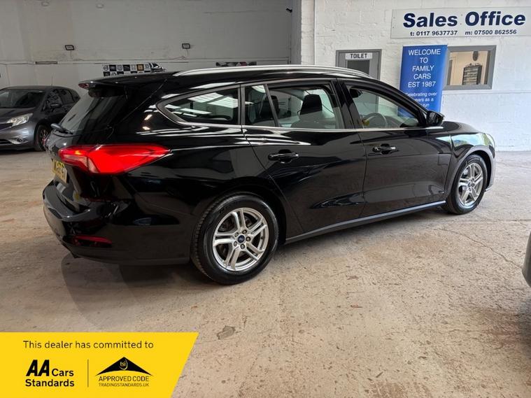 We are a proud family-run business established in 1987, with over 39 years of trusted service. Our fully indoor showroom allows you to browse comfortably in any weather. Every vehicle is HPI clear and comes with a 3-month comprehensive warranty, plus 12 months of basic AA breakdown cover for added peace of mind. We are an AA Cars Assured and Trading Standards Approved dealership, so you can buy with complete confidence, we are pleased to offer this FORD FOCUS 1.0T EcoBoost Zetec Estate 5dr Petrol Manual Euro 6 (s/s) (125 ps), rare example having just one owner from new, very high specification including, satellite navigation, lane change assist, auto headlights, dab radio, Bluetooth, would make an ideal family estate car, vehicle supplied with 2 remote keys, owners book pack, service book, great service history boasting 8 recorded services, next mot due 27/02/2027, last recorded service 79950 miles, great looking example in gleaming black, one owner from new.