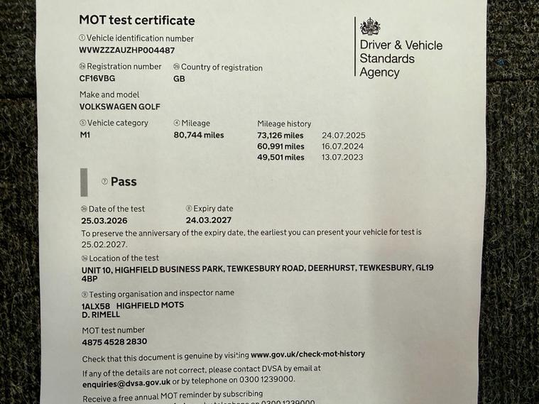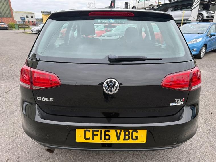 ABSOLUTE CARS have this 5 Door Volkswagen Golf 1.6 TDI BlueMotion Tech Match Edition Euro 6 (s/s) in Metallic Black with Alloys. An Ideal Family Car + Only £20 a Year Tax ! Call in for a test drive, finance arranged & part exchange considered., 3 months warranty, Next MOT due 24/03/2027, Last serviced on 25/04/2026 at 80, 744 miles, Full service history, Grey Cloth interior, 5 seats, Metallic Black, 3 owners, 12V Socket, 12V Socket - Luggage Compartment, 16in Alloy Wheels - Dover, ABS - Anti-Lock Braking System, ASR - Anti Slip Regulation, Air Conditioning - Manual, Air Vent Surrounds - Chrome Effect, Airbags - Curtain Front, Airbags - Curtain Rear, Airbags - Driver, Airbags - Drivers Knee, Airbags - Front Passenger, Airbags - Front Passenger with Deactivation Switch, Airbags - Front Seat Side Impact, Alarm with Interior Protection, Anti-Theft Wheel Bolts, Armrest - Front Centre with Storage Compartment, Automatic Dimming Rear View Mirror, Automatic Post-Collision Braking System, Black Front Air Intake and Radiator Grille with Chrome Trimmed Inserts, Bluetooth Audio Connection, Bluetooth Telephone Preparation, Body Coloured Bumpers, Body Coloured Door Handles, Body-Coloured Door Mirrors with Integrated Indicators, Brake Pad Wear Indicator, Branded Points of Interest for Sat Nav, Car Information Display, Car-Net Guide and Inform (3 Year Subscription From New), Carpet - Black, Central Locking - Remote with 2 Remote Keys, Child Locks in Rear Doors, Chrome-Plated Light Switch Surround, Colour Touch Screen - 6.5in, Composition Media System, Convenience Pack, Cruise Control - Adaptive, Cup Holders - Front x2, Cup Holders - Rear Armrest x2, DAB - Digital Radio Reception, Dashboard - Brushed Dark Silver Decorative Inserts, Daytime Running Lights, Discover Navigation Touch-Screen Navigation Radio System, Door Mirrors - Electrically Adjustable-Heated and Folding, Door Mirrors - Puddle Lights, Door Mirrors - Reverse Activated Kerb View Adjustment on Passengers, Door Panels - Brushed Dark Silver Decorative Inserts, Driver Alert System, Driver Profile Selection, Dust and Pollen Filter, ESP - Electronic Stability Programme, Electric Windows - Front and Rear, Electronic Engine Immobiliser, Electronic Parking Brake with Auto Hold Function, European Mapping Data, First-Aid Kit and Warning Triangle - Holder Only, Front Assist including City Emergency Braking, Front Fog Lights with Cornering Lights, Front Seat Back Storage Pockets, Gear Shift Indicator, Glovebox - Illuminated - Cooled - Lockable, Grab Handles - Front x2 Rear x2 with Coat Hooks, HBA - Hydraulic Brake Assist, Head Restraints - Front Whiplash Optimised, Headlight Range Adjustment, Headlight Washer System, Headlights - Coming-Leaving Home Function, Headlights - Dusk Sensor - Automatic Driving Lights, Headlights - Halogen Clear - Range Adjustable, Heated Front Seats, Heated Rear Windscreen, Heated Windscreen Washer Jets, Height and Reach Adjustable Steering Column, Height-Adjustable Front Three-Point Seat Belts with Tensioners, High Level 3rd Brake Light - LED, ISOFIX Child Seat Preparation for 2 Rear Seats, Instrument Lighting - White Adjustable Panel Illumination, Interior Lighting Delay, Keys - Folding x 2, LED Rear Number Plate Lights, Leather Trimmed Gear Knob, Leather Trimmed Three-Spoke Steering Wheel and Gear Knob, Lights on Warning Buzzer, Load Lashing Points x4 in Luggage Compartment, Load-Through Provision, Load-through Provision Converts to Table Function, Low Washer Fluid Warning Light, Luggage Compartment - Hooks, Luggage Compartment Cover, Luggage Compartment Light, Luggage Compartment Storage Area on Right, MDI - Multi Device Interface with USB - iPod Connection Cables, Map View - 2D and 3D, Mirror Pack, Misfuel Prevention Device, Multifunction Computer - 3.5in Display, Optical Parking Display via Vehicles Audio System, Parking Sensors - Front and Rear, Parking Sensors - Rear, Power Assisted Steering - Speed Sensitive, Pre-Crash Preventive Occupant Protection, Radar Sensor Controlled Distance Monitoring System, Radio Aerial Integrated into Rear Windscreen, Rain Sensor, Reading Lights - Front x2 and Rear x2, Rear Centre Armrest, Rear Diffuser - Black, Reflectors in Doors, Route Options for Sat Nav - Fast-Short-Eco, SD Card Reader, SMS Functionality - Read - Compose and Send SMS Messages Using Touch Screen Display - Android Compatible Smartphones Only, Seats - Front Comfort, Seats - Front Lumbar Support, Seats - Height Adjustment - Front, Service Interval Display, Simultaneous Pairing of 2 Compatible Mobile Devices, Single CD Player, Sound Output - 4x20 Watt, Spare Wheel - Space Saver Steel, Speakers x8, Speed Limit Display, Speed Limiter, Split Folding Rear Backrests 60-40, Spoiler - Tailgate, Steering Wheel - Audio Controls, Steering Wheel - Multifunction, Storage - Cover for Area in Roof Console, Storage Compartment in Centre Console Covered.