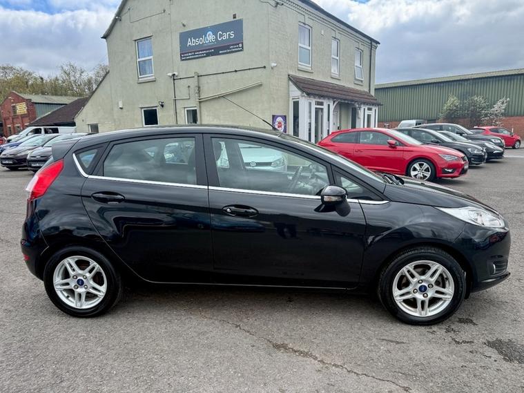 ABSOLUTE CARS have this 5 Door Ford Fiesta 1.0T EcoBoost Zetec Euro 5 (s/s) in Metallic Black with Alloys. An Ideal First Car + Only £20 a Year Tax ! Call in for a test drive, finance arranged & part exchange considered., 3 months warranty, Next MOT due 14/01/2027, Last serviced at 45, 144 miles, Full service history, Grey Cloth interior, 5 seats, Metallic Black, 4 owners, 12V Power Socket - Front, 15in Alloy Wheels - 5x2 Spoke, ABS - Anti-lock Braking System, Aesthetic Lighting Package, Air Conditioning - Manual, Airbags - Curtain, Airbags - Driver Side Knee, Airbags - Front Passenger, Airbags - Head and Thorax, Airbags - Passenger Deactivation, Brake Warning Lights - Automatic Flashing of Brake Lights Under Heavy Braking, Bumpers - Front and Rear - Body Colour, Centre Console - with Trinket Tray - Two Cup Holders, Chrome Belt Line Finisher, Courtesy Light - Overhead with Theatre-Style Dimming, Courtesy Lights with Map Reading Lights, Door Handles - Body Colour, Door Mirrors - Electrically Operated and Heated, Drivers Airbag, EBA - Emergency Brake Assist, EBD - Electronic Brakeforce Distribution, ECOmode, EPAS - Electric Power Assisted Steering, ESP - Electronic Stability Programme, Electric Windows - Front with One Touch Lowering Drivers, Emergency Brake Warning - Automatic Hazard Warning Lights, Ford AM-FM CD Audio System, Ford Easy Fuel Capless Refuelling System with Misfuel Inhibitor, Front Fog Lights - Chrome Bezel Rings, Front Lower Grille Insert and Surround - Black, Front Seatback Map Pockets - Driver and Passenger, Front Upper Grille - Chrome Finish Surround, Front Upper Grille Insert - Chrome bars, Gear Knob - Leather, Gearshift Indicator Light, Gearshift Knob - Leather-Trimmed with Chrome Finish Bezel, Glovebox - Illuminated, Handbrake Release Knob - Chrome, Head Restraints - 2-way Adjustment, Head Restraints - Rear 2-Way Adjustment, Headlights - Courtesy Delay, Headlights - Follow Me Home, Headlights - Halogen Projector with Silver Bezel, Headliner - Woven, Heated Front Windscreen, High-Mounted Rear Brake Light, Hill Start Assist, IPS - Intelligent Protection System, Interior Door Lever - Chrome Finish, LED Ambient Courtesy Lighting, Leather-Trimmed Handbrake, Loadspace Compartment Light, Loadspace Floor Carpet, Locking Wheel Nuts, MyKey, Passenger Airbag Deactivation Indicator, Passengers seat manual 2-way adjustment, Pollen Filter, Rake and Reach Steering Adjustable, Rear Courtesy Lights, Rear Seats Back - Carpet, Rear Spoiler - Body Colour, Remote Central Locking, Removable Package Tray, Seats - 60-40 Split Folding Back and Fixed Cushion, Seats - Drivers 4-Way Adjustment, Seats - Front Comfort Style, Seats - ISOFIX Mounting Brackets for Child Seats, Second Remote Ignition Key, Steering Wheel - 3-Spoke - Leather Trimmed with Bezel, Steering Wheel - Multifunction, Stowage Pockets - Driver and Front Passenger Seatbacks, Suspension - Front Stabiliser Bar, Tailgate Handle - Body Colour with Chrome Finisher, Trip Computer, Tyre Inflator Kit, USB and AUX Connection for External Music Devices, AS WE ARE AN AA CARS DEALER THIS VEHICLE COMES WITH 12 MONTHS AA BREAKDOWN COVER.