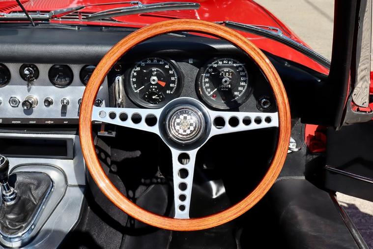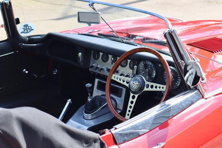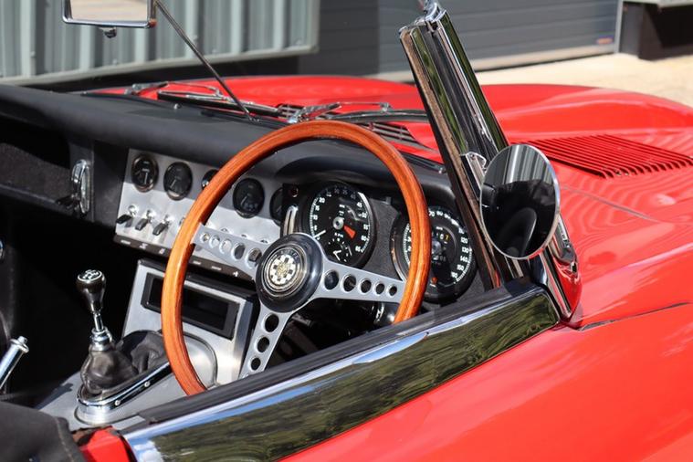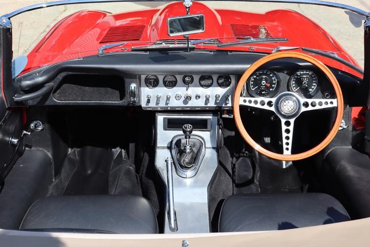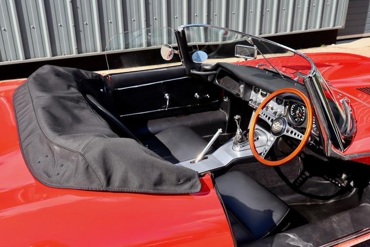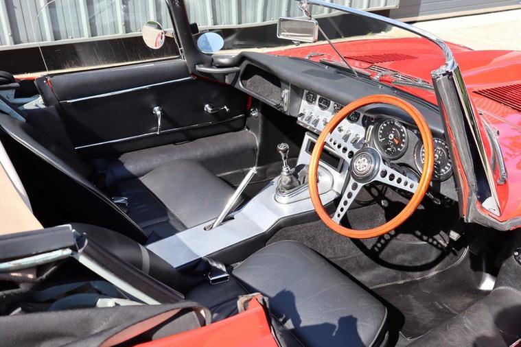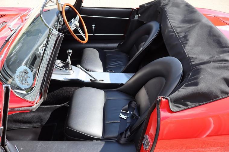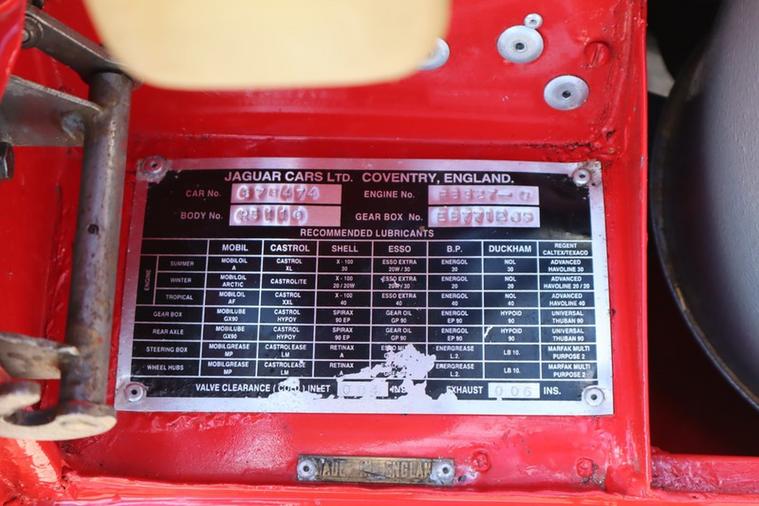This E Type chassis number 878474 completed build from the factory on 31st October 1962, and was dispatched to New York on 7th November 1962 where it was sold by Jaguar Cars New York. It was originally Opalescent Silver Blue with Red Leather and Fawn Roof according to the Jaguar Heritage Certificate in the file.