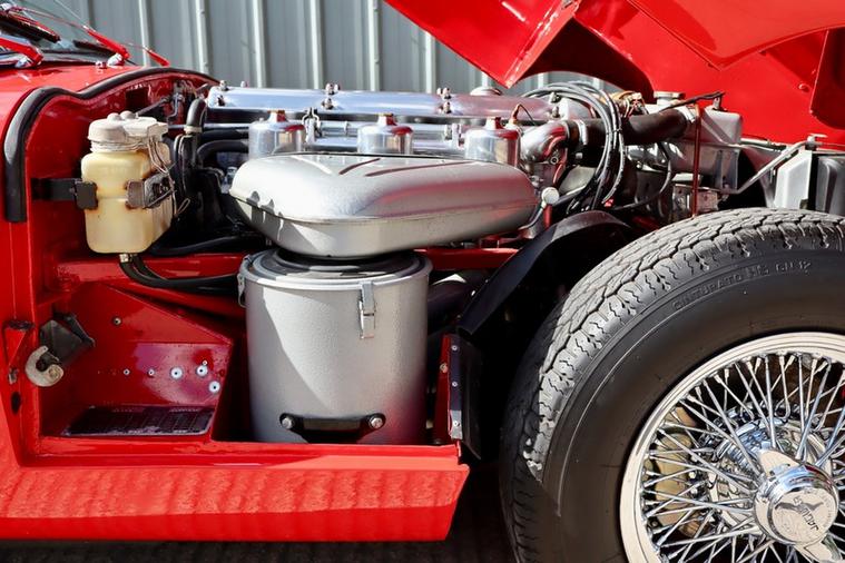 It is a Matching Numbers Car which indicates it still has the engine it was built with. It was converted to RHD around 30 years ago, and features Shiny Chrome Wire Wheels, Mohair Hood, and an engine bay carefully prepared including freshly painted frames when the engine was fully rebuilt in 2022.