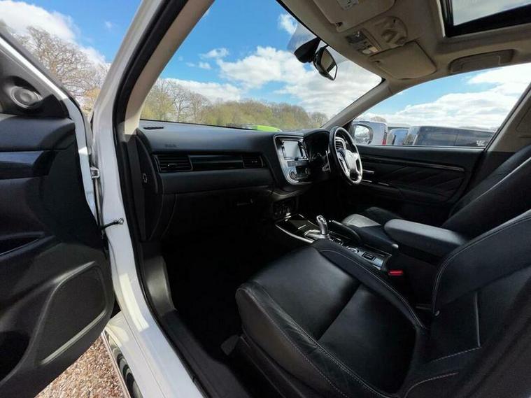 This Mitsubishi Outlander GX4h offers an efficient and capable driving experience with its 2.0L petrol plug in hybrid engine and four wheel drive system. As a Euro 6 compliant vehicle, it meets modern emissions standards. This GX4h model comes equipped with a range of convenient features, including a 360 degree camera system for enhanced parking assistance, keyless entry for effortless access, and an electric glass tilt and slide sunroof with anti trapping functionality. You can also enjoy seamless connectivity with Bluetooth audio streaming and a rear view camera, further aiding your journeys.