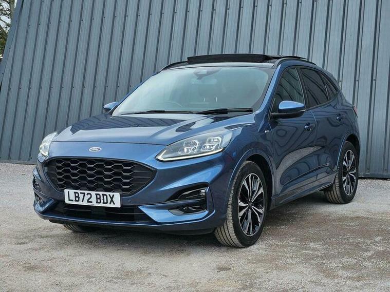 This 2022 Ford Kuga ST Line X Edition, a 2.5L Petrol Hybrid, boasts a full service history with its last service completed on 25 February 2026 at 36, 950 miles, and benefits from an MOT valid until February 2027, alongside a clear vehicle history check. This Euro 6 compliant model has had only one owner and comes with a 3 month warranty for your peace of mind. Inside, you'll find a host of desirable features including wireless phone charging, heated front and rear seats for ultimate comfort, and a power opening panoramic roof to let in the light. Parking is made easier with front and rear parking sensors.