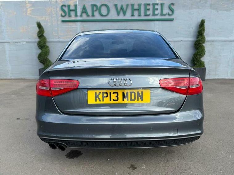 Shapo Wheels Limited presents the Audi A4 2.0 TFSI Black Edition S Tronic quattro Euro 5 (s/s) 4dr + AUTOMATIC + PETROL + 5 DOOR + HPI CLEAR + FULL SERVICE HISTORY + LAST SERVICED IN MARCH 2026 + MOT EXPIRY 09/03/2027 + AUX + BLUETOOTH + REAR & FRONT PARKING SENSORS + AUTO LIGHTS + AUTO WIPERS + AUTO FOLDING MIRRORS + CRUISE CONTROL + ULEZ COMPLIANT + SPARE KEY PRESENT.