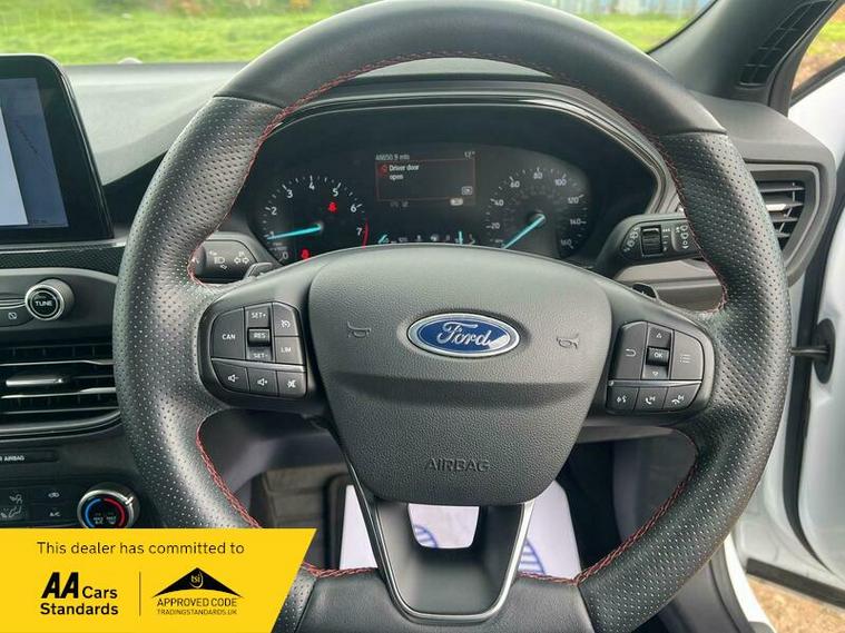 This Focus ST Line T is equipped with a host of desirable features, including the Driver Assistance Pack with adaptive cruise control, a rotary gear shift dial, and paddle shifts for an engaging driving experience. The Ford SYNC3 DAB Navigation System seamlessly integrates your smartphone with Android Auto and Apple CarPlay, while Bluetooth connectivity keeps you connected on the go. Automatic headlights ensure optimal visibility, and you'll appreciate the generous boot space for all your needs. These highlights demonstrate how this Focus is a superior choice compared to other vehicles in its class.
