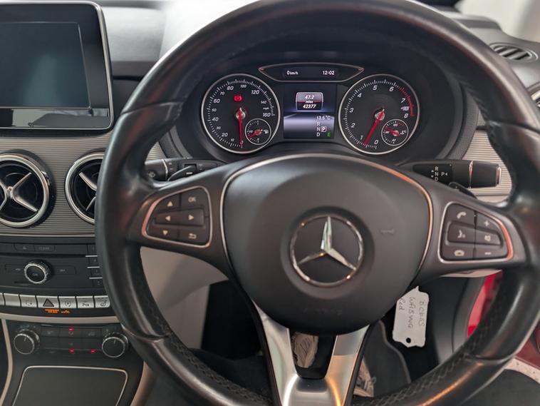 Mercedes Benz B180 Se Executive Automatic Petrol One Owner From New 2015 Ultra Low Mileage only done 42k. Full Main Dealer Service History, Reverse Camera, Cruise Control, Parking sensors front and rear, Traction Control, Satnav, Leather Seats, Beige Seats, Heated Seats, Running Day Lights, Trip Computer and Bluetooth Connect. Service Intervals; 3k, 7k, 11k, 15k, 21k, 24k, 28k, 32k, 35k, and 39k. Urban 40.9 MPG, Extra-Urban 62.8 MPG, and Combined 52.3 MPG. Insurance Group 15E and Annual Road Tax £170.