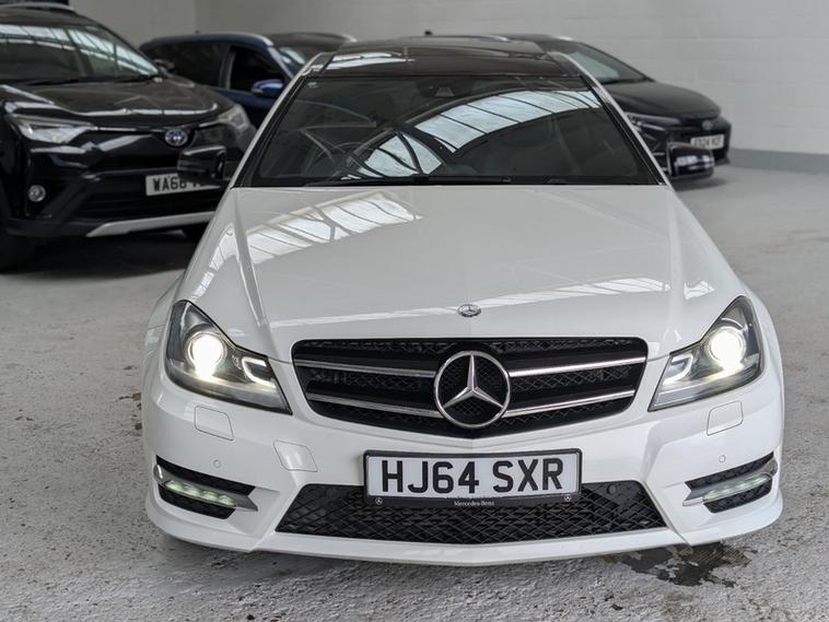 Mercedes C250 CDI AMG Sport Edition Premium Plus 2014 Diesel Automatic Full Service History 2.1 CDI Panoramic Roof Coupe. Reverse Camera, Cruise Control, Parking sensors front and rear, Traction Control, Satnav, Leather Seats, Heated Seats, Running Day Lights, Trip Computer and Bluetooth Connect. Service Intervals; 8k, 19k, 29k, 39k, 52k, 50k, 65k, 72k, and 78k. Urban 43.5 MPG, Extra-Urban 61.4 MPG, and Combined 53.3 MPG. Insurance Group 41 and Annual Road Tax £200.