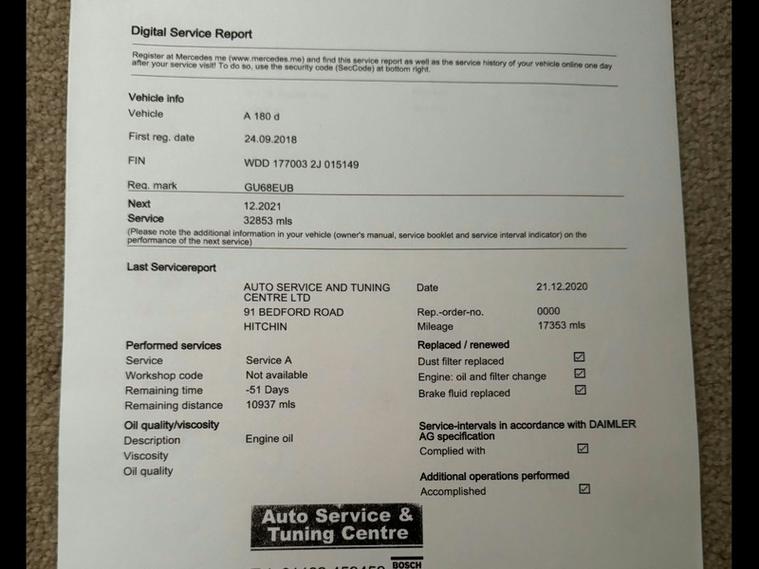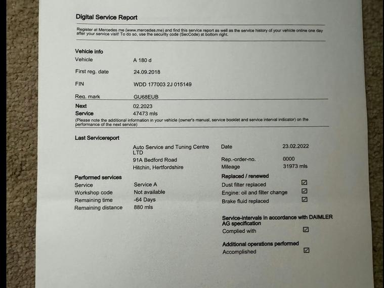 This car comes with 5 seats, Grey, 2 owners, 16in Alloy Wheels - 5-Twin-Spoke Painted in Vanadium Silver, ABS - Anti-Lock Braking System with BAS - Brake Assist, ATTENTION Assist, Active Bonnet - Pedestrian Safety Measure which Detects an Impact and Raises Bonnet by 65mm, Active Brake ASSIST, Active Lane Keeping Assist, Adaptive Brake Assist with Hold Function and Hill Start Assist, Adaptive Brake Lights, Air Conditioning - THERMATIC, Air Vents with Surround and Cruciform Nozzle in Silver Chrome, Airbag - Kneebag for Driver, Airbags - Dual Stage - Driver and Front Passenger, Airbags - Head and Sidebags - Driver and Front Passenger, Airbags - Windowbags for Driver and Front Passenger, Alarm System with Immobiliser and Interior Protection - Thatcham Category 1, Automatic Child Seat Recognition Sensor, Beltline Strips - Chrome, Black Weather Strip, Bodystyling - Side Skirts - Body-Coloured, Brake-Pad Wear Warning Indicator, Bumpers - Body Coloured, Centre Armrest - Front with Stowage, Childproof Locks - Manually Operated for Rear Doors and Electrically Operated for Rear Power Windows, Colour Inserts in Air Vents, Controller on Centre Console with Chrome Surround, Crash-Responsive Emergency Lighting, Cruise Control with Limiter, Cup Holder - Double - Front, DAB Digital Radio Tuner, Direct Steer Speed-Sensitive Power Steering, Direction Indicators with Lane-Changer Function, Door Handles - Body Coloured, Door Mirrors - Electrically Adjustable and Heated with Integrated LED Indicators, Dual Bluetooth Interface - 2 USB Ports - Type C, Dynamic Select with a Choice of Driving Modes - ECO-Comfort-Sport and Individual, ESP - Electronic Stability Programme with ASR - Acceleration Skid Control, ESP Curve Dynamic Assist, Electric Parking Brake, Electric Windows - 4, Exhaust System - No Visible Tailpipes, First Aid Kit and Warning Triangle, Floor Mats, Footwell Lights in Front, Front Door Sills with Mercedes-Benz Lettering, Glass - Rear Windscreen - Heated with Timer Control, Glove Compartment - Illuminated, Halogen Headlights with Integrated Daytime Running Lights, Hard-Disk Navigation, Headlamp Assist - Automatic Headlamp Activation, Hey Mercedes - Voice Activation, High Level Third Brake Light - LED, ISOFIX and Top-Tether Child Seat Fixing Points in Rear - Two Outer Seats, Instrument Cluster - Fluid Level Warning Indicator for Fuel - Oil - Coolant and Washer Fluid, Instrument Cluster - Outside Temperature Display, Instrument Cluster - Service Indicator ASSYST, Instrument Cluster - Trip Computer in Multi-Function Display with Current Fuel Consumption Indicator, Instrument Display - 7in Display, Interior Lighting - Cup Holder - Stowage Compartment Lighting, Interior Lighting - Handle Recess - Closing Handle - Front-Rear-Left-Right, Interior Lighting - Oddments Tray, Interior Lighting - Reading Lamp in Rear in Support Plate - Rear-Left-Right, Interior Lighting - Reading Lamps - Front-Left-Right - Console Downlighter, Interior Lighting - Signal Exit Lamp - Front-Left-Right, Interior Lighting - Signal and Ambient Lamp, Interior Lighting - Touchpad, Interior Lighting - Vanity Lights - Front-Left-Right, KEYLESS-GO Starting Function, Light Failure Indicator, Live Traffic Information, Luggage Compartment Cover, Luggage Nets on Driver and Front Passengers Backrests, MBUX Multimedia System, Media Display - 7in Touch Screen Display, Mercedes Me Connect - Standard Services, Part LED Tail Lights, Radiator Grille - Diamond in Black with One Louvre Painted in Vehicle Colour and Chrome Insert, Radio Aerial Roof Spoiler, Rain-Sensing Windscreen Wipers with Two Sensitivity Settings, Rear Fog Light, Rear Windscreen Wiper, Remote Central Locking and Crash Sensor with Emergency Opening Function, Reversing Camera with Parking Guidelines - 180 Degree View, Roof Lining - Black, Seat Belts - Rear Three-Point - 3, Seat Belts Reminder - Front and Rear, Seat Comfort Package, Seat Occupancy Sensor - Front Passenger Seat, Seats - Front Cushion Length Adjustment, Seats - Front Manually Adjustable, Seats - Rear Seat Backrests - Split Folding 1-3 - 2-3, Seats with Adjustable Head Restraints, Speed Limit Assist, Sports Suspension - Lowered, Steering Column - Manually Adjustable for Height and Reach, Steering Wheel - 3-Spoke Multi-Function - Trimmed in Leather, TIREFIT Tyre-Sealant Kit, Touchpad on Centre Console, Tyre Pressure Monitoring System,