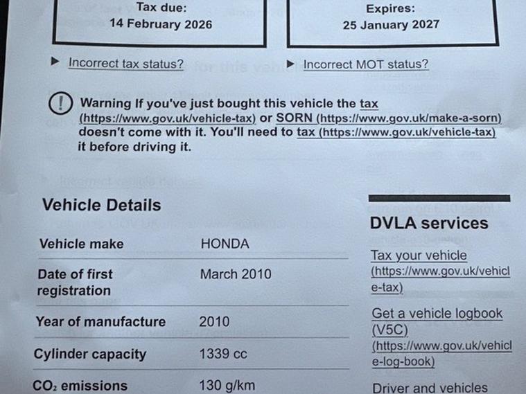 Service History, Last serviced at 113359, Next MOT: 25/01/2027, Spare Key, 2 Former Keepers, hpi clear