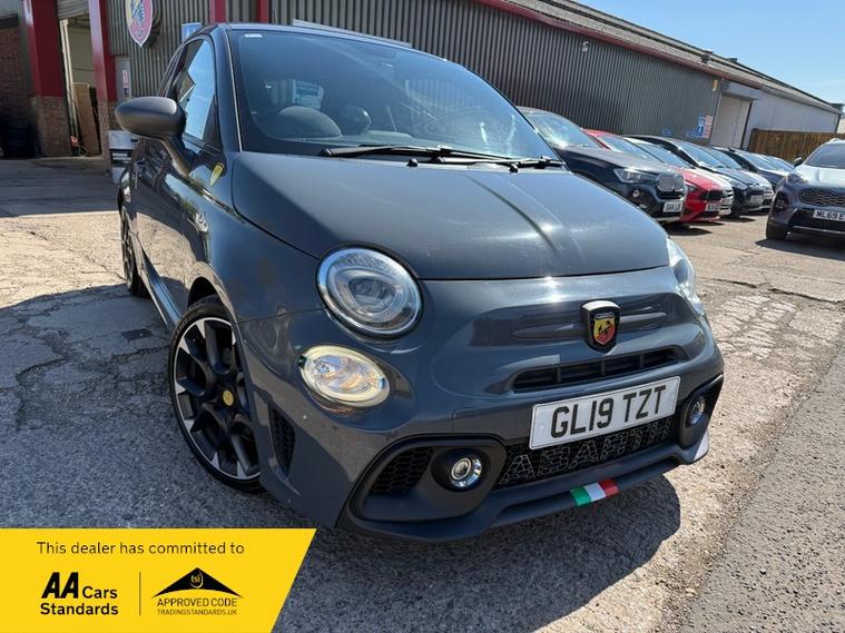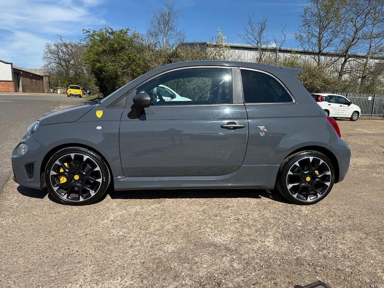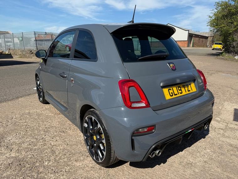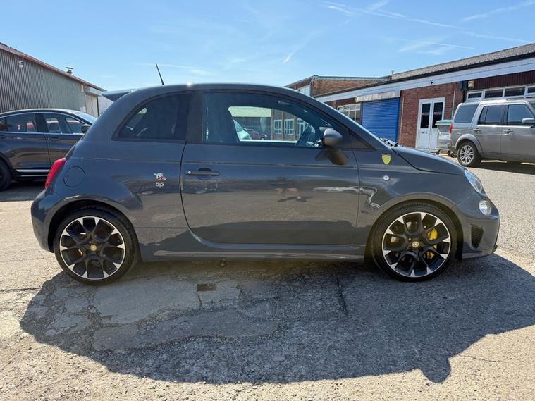 This 2019 Abarth 595 T Jet Competizione 70th is presented with a full service history and a clear vehicle history check, offering peace of mind for its next owner. The car has just had the timing belt and waterpump replaced. This Euro 6 compliant 1.4L petrol model boasts a 70th anniversary Competizione trim, featuring striking yellow Brembo brake calipers. Inside, you'll find a 5in touchscreen radio with Bluetooth, USB, and DAB. Enjoy the convenience of automatic climate control and rear parking sensors, all contributing to a comfortable driving experience.