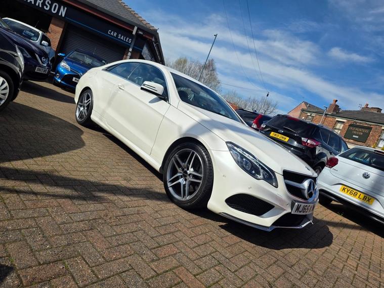 Steve Pearson Car Sales are Pleased to Present this Stunning Low Mileage Mercedes-Benz E-Class E200 AMG Coupe in Pearlescent White. Only 2 Former Keepers with Lots of Service History. All usual Mercedes refinements include.... 7 Speed automatic gearbox with Paddle Shift, ABS, Air conditioning, alloy wheels, cd multi changer, climate control, cruise control, heated leather sport seats, flat bottom AMG steering wheel, cup holders, break assist, electric windows/mirrors, power steering, adjustable steering, 12v power socket, body coloured bumpers, brake assist, daytime running lights, automatic headlights, electric folding mirrors, front and rear parking sensors, reverse camera, engine immobiliser, front airbags, front fog lights, hill start assist, ISOix anchor point, MP3, DAB radio, satellite navigation, side impact airbags, speakers, steering wheel controls, traction control, voice control etc....Looks and Drives Superb. This car comes with 2 Keys, professionally valeted and fully HPI checked. We welcome Part Exchange and can offer Great Finance Deals, Please take a look at our TESTIMONIALS On our Website and Buy In confidence from a long Established Family Firm at dealer's website where we have over 60 cars in stock, for more information please telephone or pop in for a cup of tea! Our showroom and floodlit forecourt are open 7 days a week, , Tameside's Finest Collection of Low Mileage Quality Cars