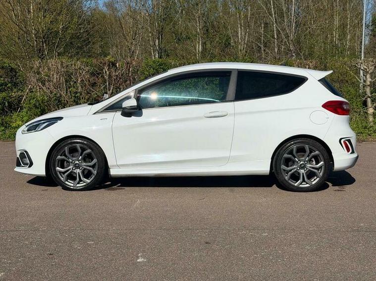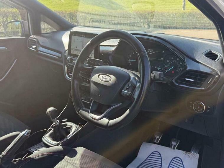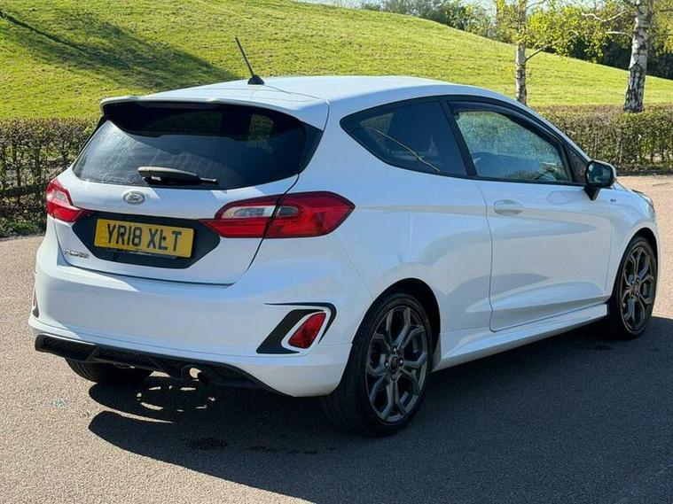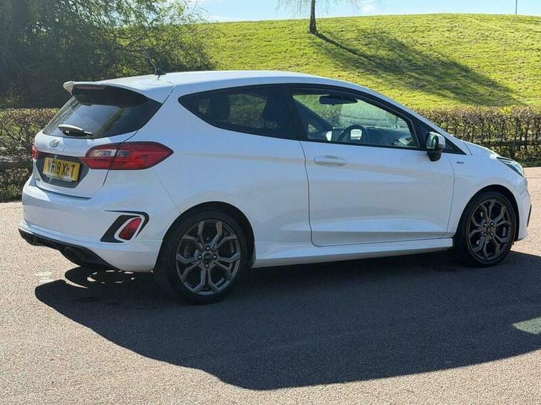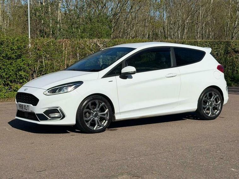 This 2018 Ford Fiesta ST Line boasts an exceptionally low mileage of just 53, 000 miles, a significant advantage for a vehicle of its age. This particular model is the T ST Line variant, powered by an efficient 1.0 litre petrol engine and meeting Euro 6 emissions standards. It comes with a clear vehicle history check, offering peace of mind. Notable features include the NCAP Pack with automatic headlights, a Ford DAB radio with Ford SYNC3 compatibility for Apple CarPlay and Android Auto, and manual air conditioning for your comfort.