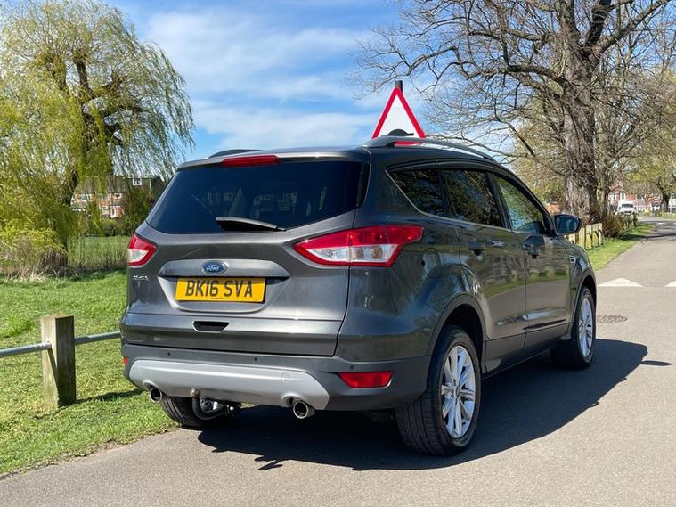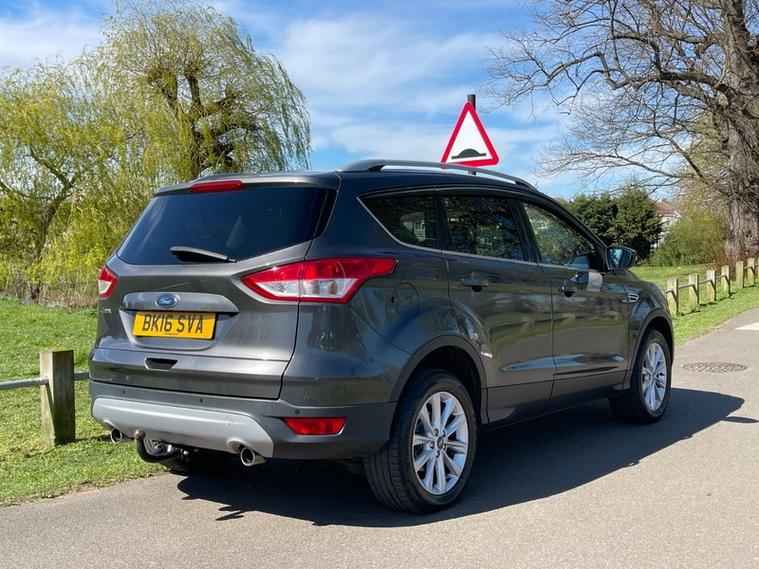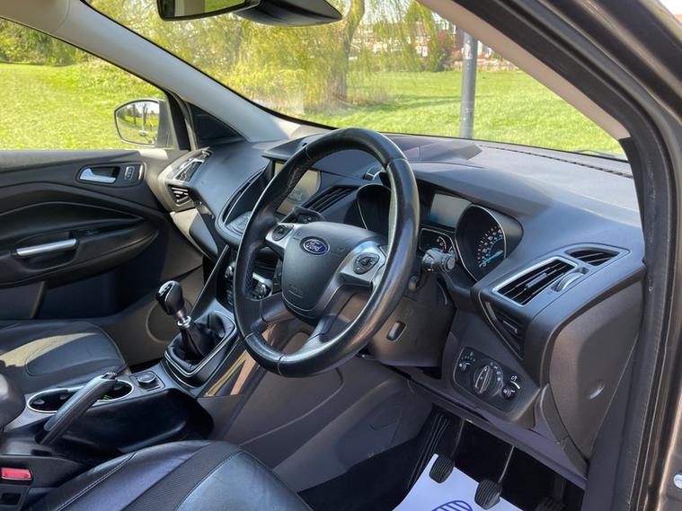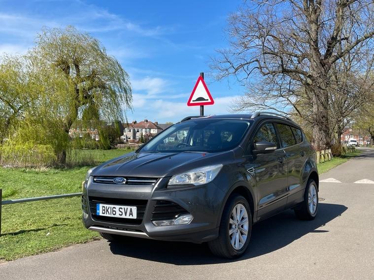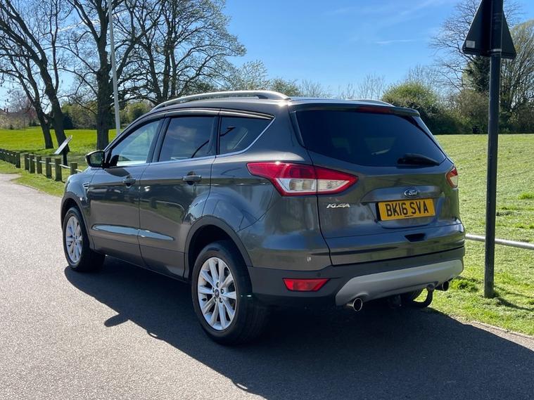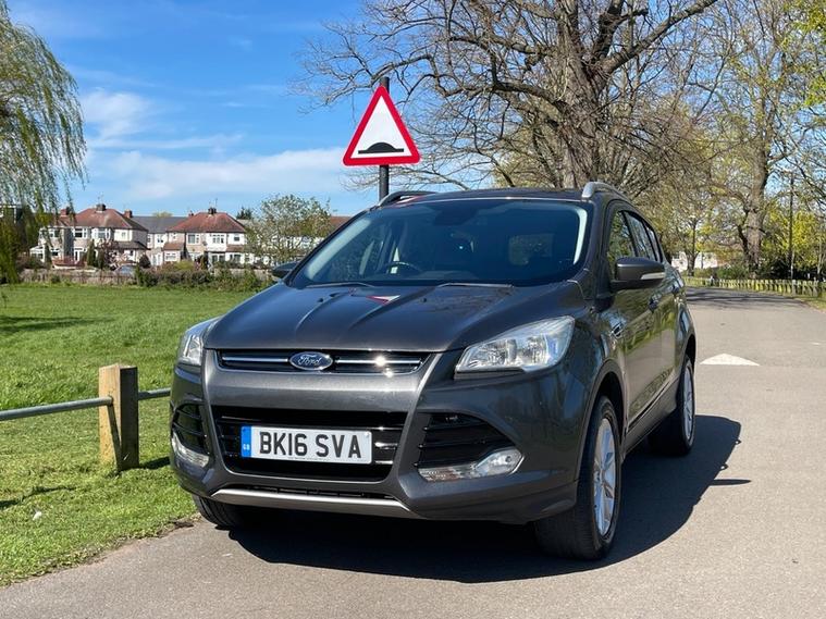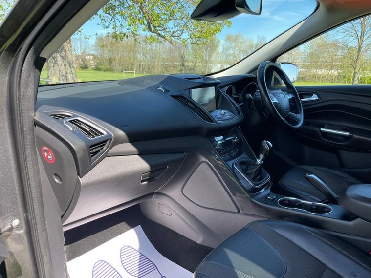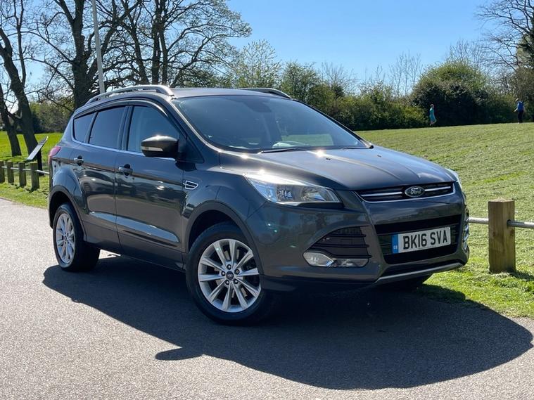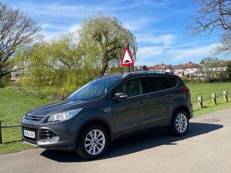 SERVICE HISTORY, JUST SERVICED, 2 KEYS, NEXT MOT DUE MARCH 2027 *no advisories*, This 2016 Ford Kuga TDCi Titanium offers an exceptional blend of efficiency and technology, boasting an impressive fuel economy of 60 mpg. This particular model, a Euro 6 compliant vehicle, features a robust 2.0L diesel engine and comes equipped with desirable Titanium trim enhancements. You'll appreciate the convenience of Dual Zone Electronic Automatic Temperature Control for personalised comfort, along with automatic headlights that adapt to changing light conditions. Stay connected on the go with the integrated Bluetooth hands free phone system, ensuring safe and easy communication.