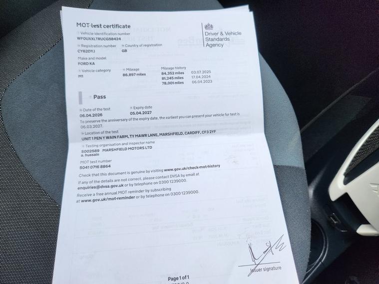 This Ford ka comes with 12 months MOT,