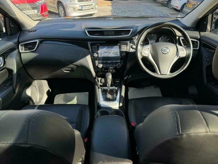 Superb Condition, Looks And Drives immaculate, 1 owner from new, 2 keys, mot April 2027, 6 months warranty, only covered 64, 000 miles, This Qashqai stands out with its impressive fuel economy, achieving a remarkable 61 miles per gallon, full Nissan service history (10) services carried out by Nissan main dealer, last service carried out at (62316), equipped with panoramic glass roof with sliding cover, Intelligent Park Assist, black leather interior, front heated seats, front electric driver seat, 19' diamond cut Nissan wheels, Satellite Navigation - Nissan Connect, Smart Vision Pack, Keyless Entry, 360 Bird's Eye view, Push Start-Stop Button, Headlights - Bi-LED, Blind Spot Warning, Hill Start Assist Brake Assist, Cruise Control with Speed Limiter, Rear View Camera and Front & rear Parking Sensor, Lane Departure Warning, LED Daytime Running Lights, DAB-Bluetooth-usb-aux, Roof Rails, Heated Windscreen, Auto Rain Sensing Wipers, front cup holders, spare wheel,