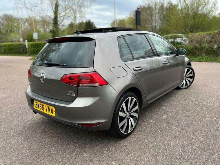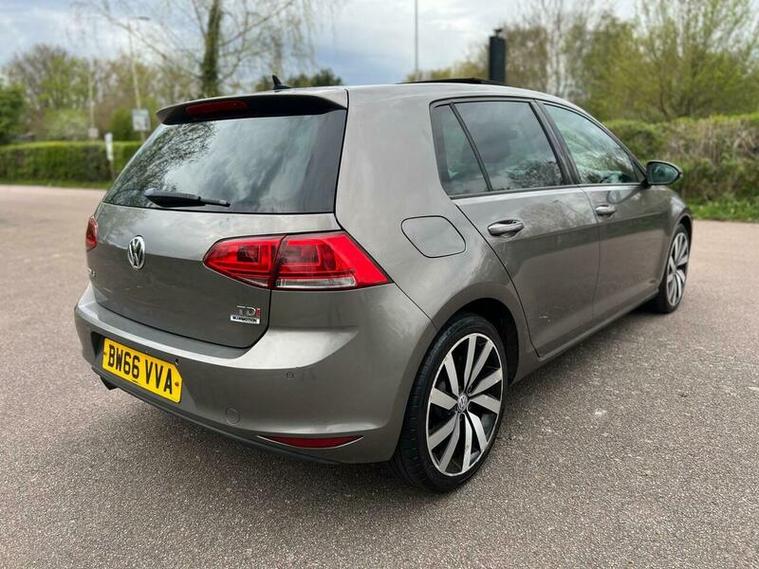 This 2016 Volkswagen Golf TDI GT Edition offers a superb blend of efficiency and style, boasting a 1.6 litre Euro 6 diesel engine for economical driving. This model comes equipped with a host of desirable features, including Park Assist and front and rear parking sensors to make manoeuvring effortless. Enjoy the convenience of automatic dusk sensing headlights and a Bluetooth audio connection for seamless entertainment. The spacious interior is further enhanced by a panoramic sunroof, creating an airy and pleasant cabin environment.
